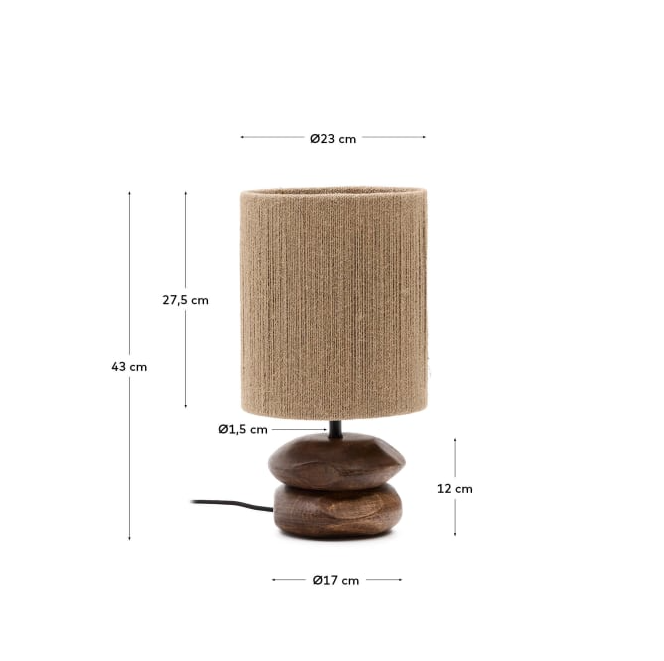 Table lamp KOR is a unique element that introduces rustic charm and natural accents into the interior. Made of carved acacia wood in a dark finish, it impresses with unique textures and careful handicrafts. Hand -woven lame lampshade gives it a warm, organic character, perfectly fitting into natural and cozy arrangements.
