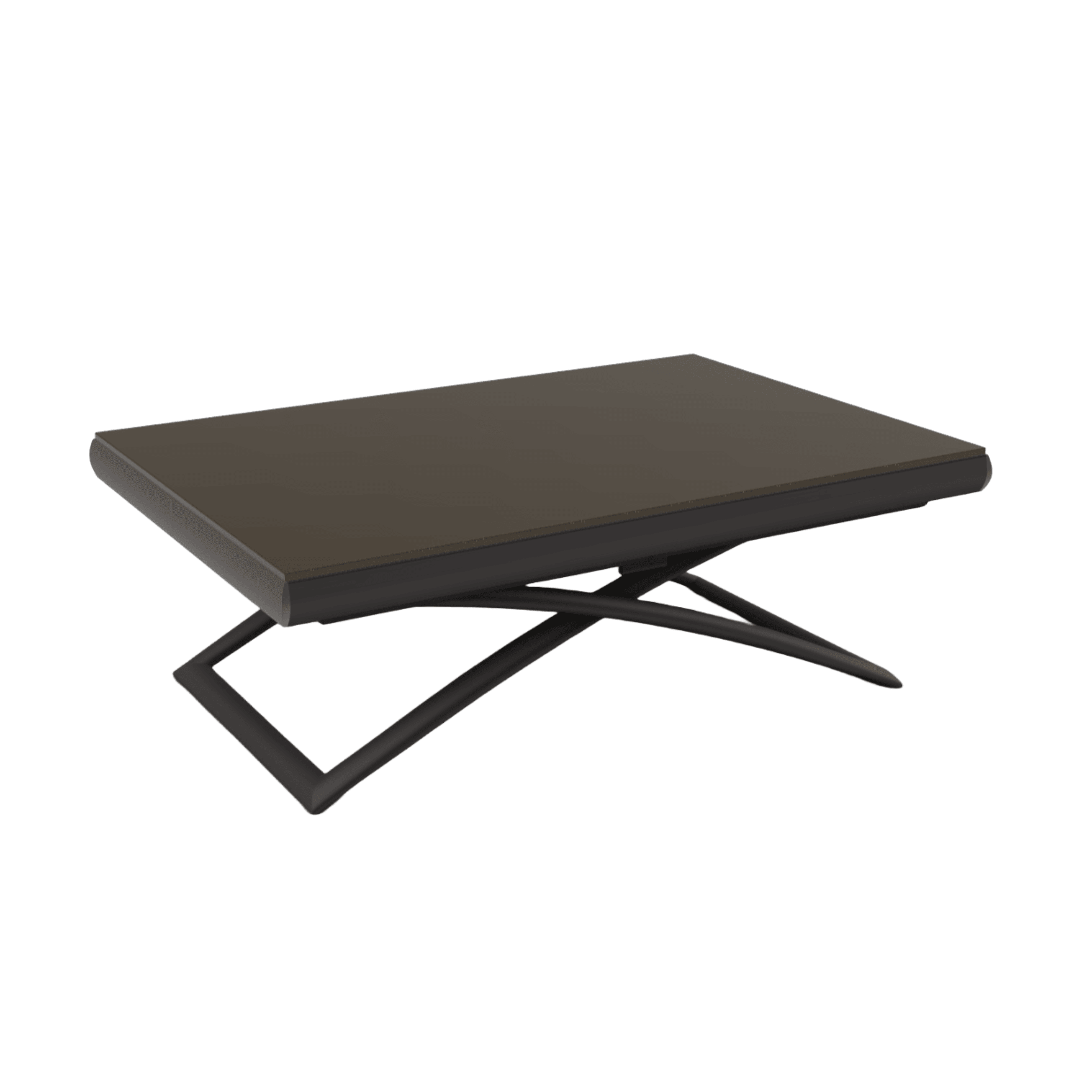 Table Dakota with a metal frame and a top made of glass or ceramics. Expandable and height-adjustable. Dakota is a versatile table for the living room that can easily be transformed into a dining table accommodating 6/8 guests. Just press the button located on the longer side, and you can adjust the height, choosing from one of 7 different positions.
