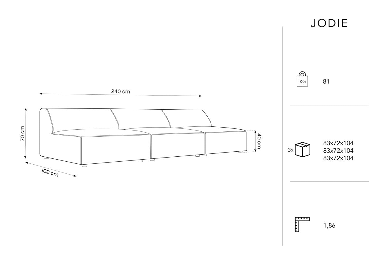 Sofa for three people Jodie is not just a comfortable seat, but also a decor element that adds elegance to your interior. It is made of high-quality structural fabric, which guarantees not only excellent comfort but also long-lasting durability of the furniture. The comfortable seat and backrest provide perfect conditions for relaxation and rest.