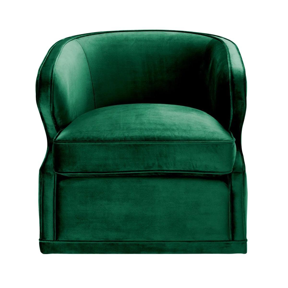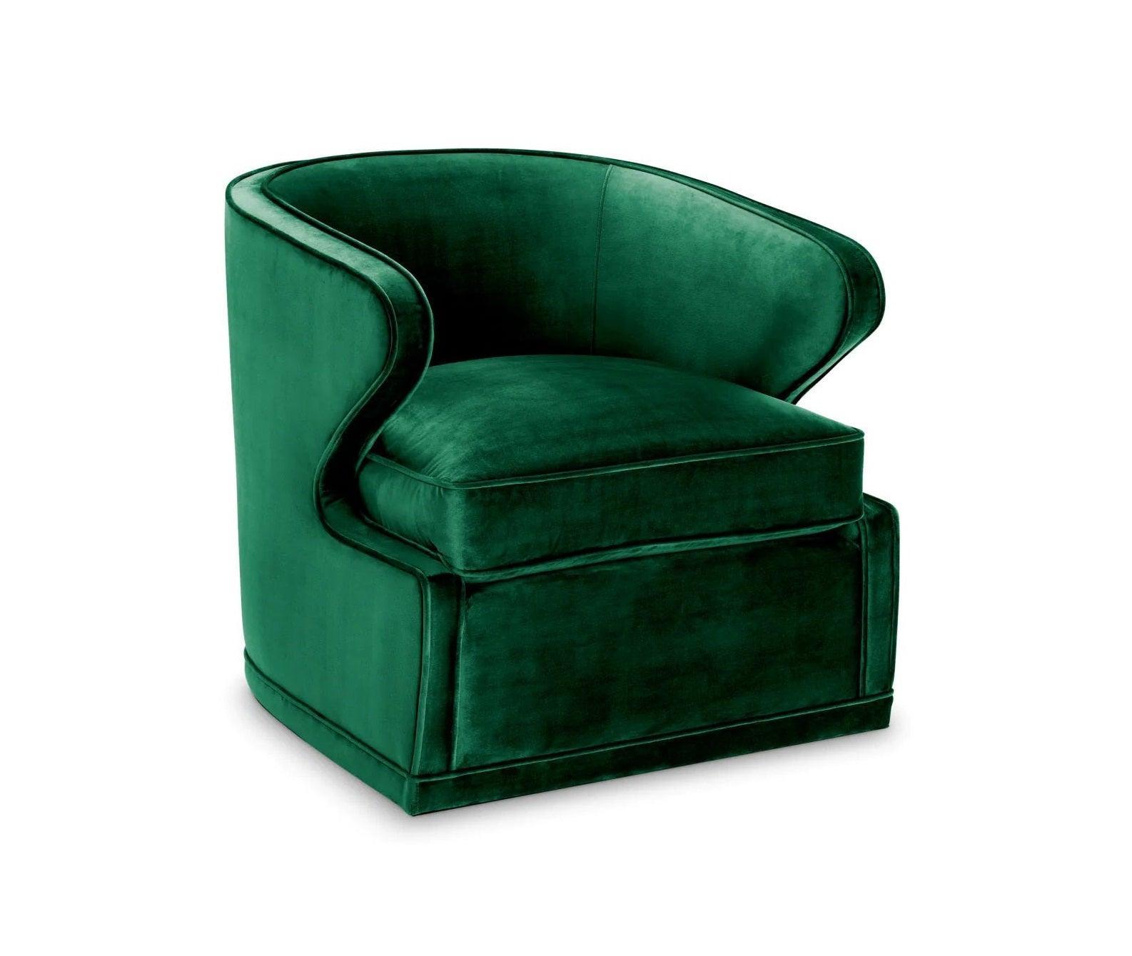 Dark green swivel velvet armchair