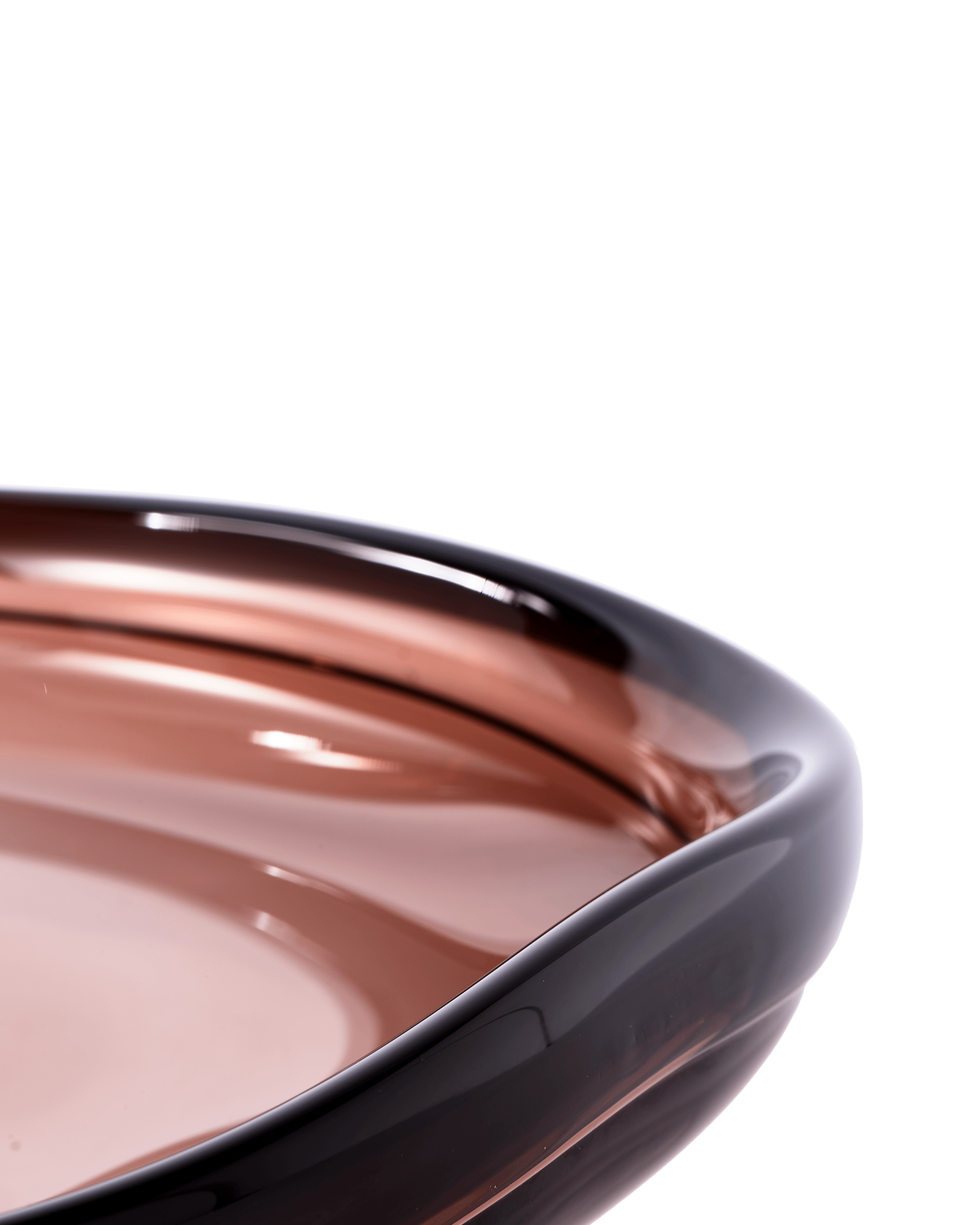 Brown plate Eye to model made of high-quality glass, which stands out with its wavy shape and simple, yet unobtrusive design. The tinted glass adds charm and class to the plate, while its irregular shape makes this model suitable for both storing fruits and snacks, as well as serving as a decorative tray. Combine the large plate with a small plate to complete the set.