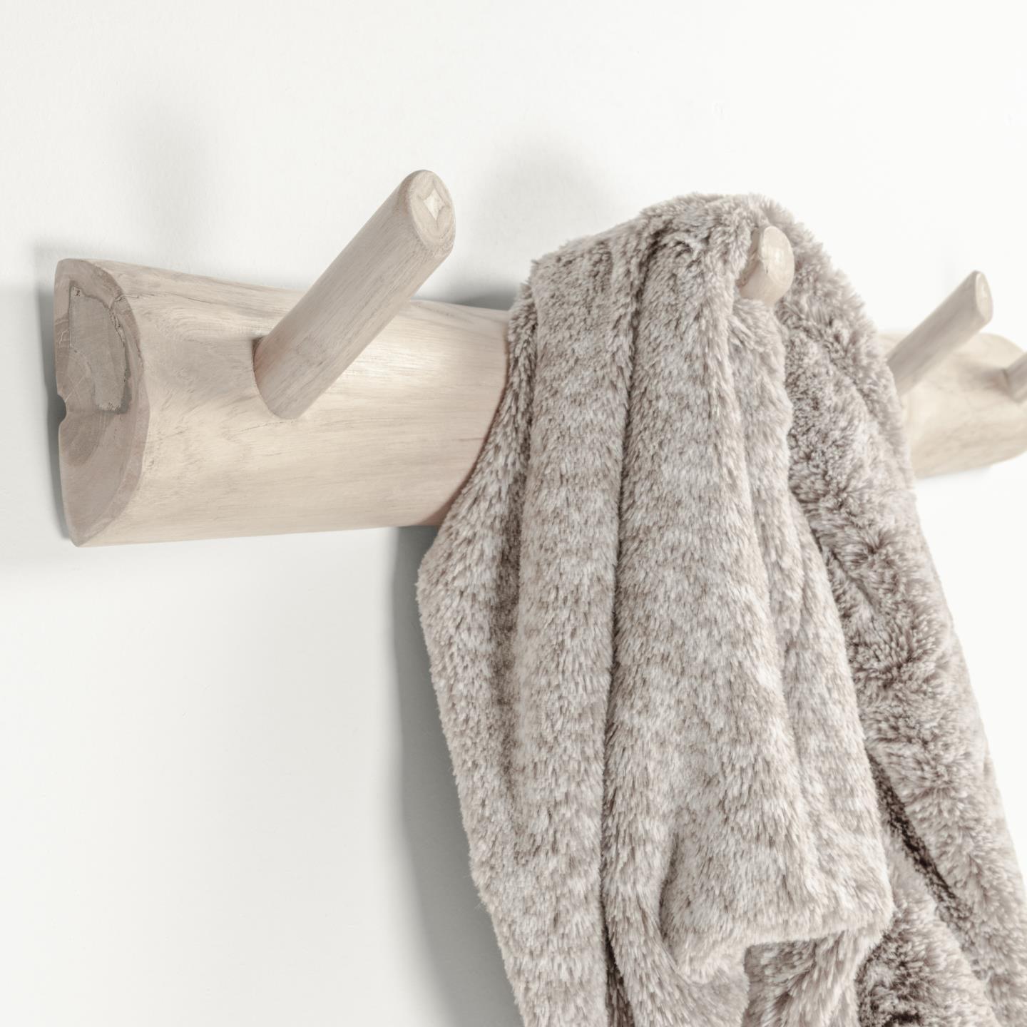 The Gaillech wall coat rack is not just a practical piece of furniture; it's a true masterpiece of craftsmanship made from solid teak wood with unique shades and irregular shapes. What makes it special is that even the racks are crafted from unique teak branches, giving it an unparalleled character.