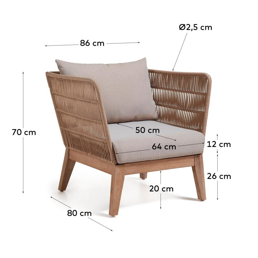 Garden armchair Belleny was created for lovers of nature and elegance. Made of solid acacia wood and hand -woven rope, it impresses with its solidity and unique style. Each detail of the Bellena chair emanates with a natural charm, adding a unique character to any in the open air.