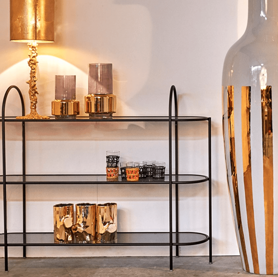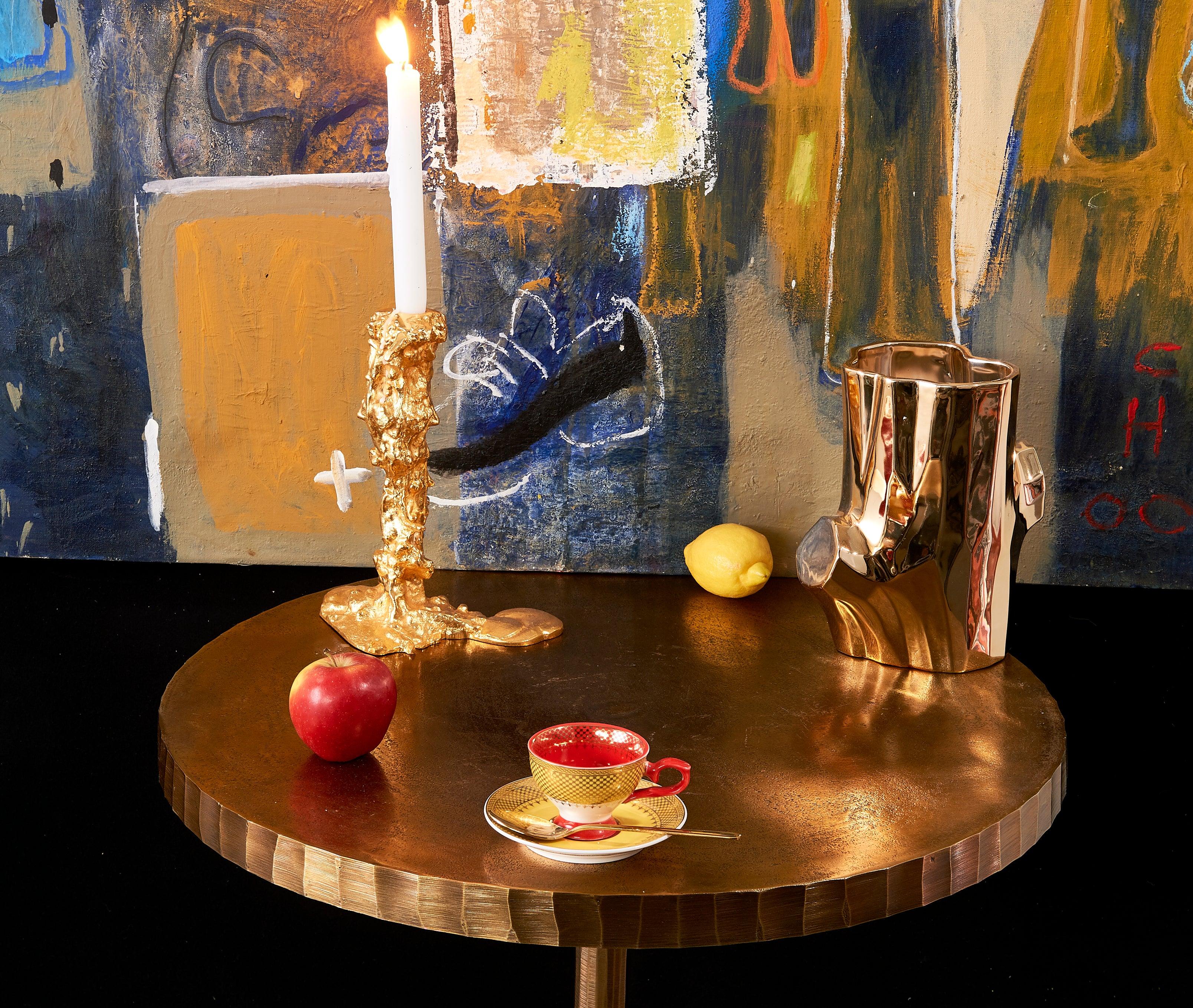 Vase Log in gold color is a blend of modernity and nature-inspired design. This model has been handcrafted from porcelain, featuring a golden glaze that highlights and accentuates the texture of its wood-inspired shapes.
