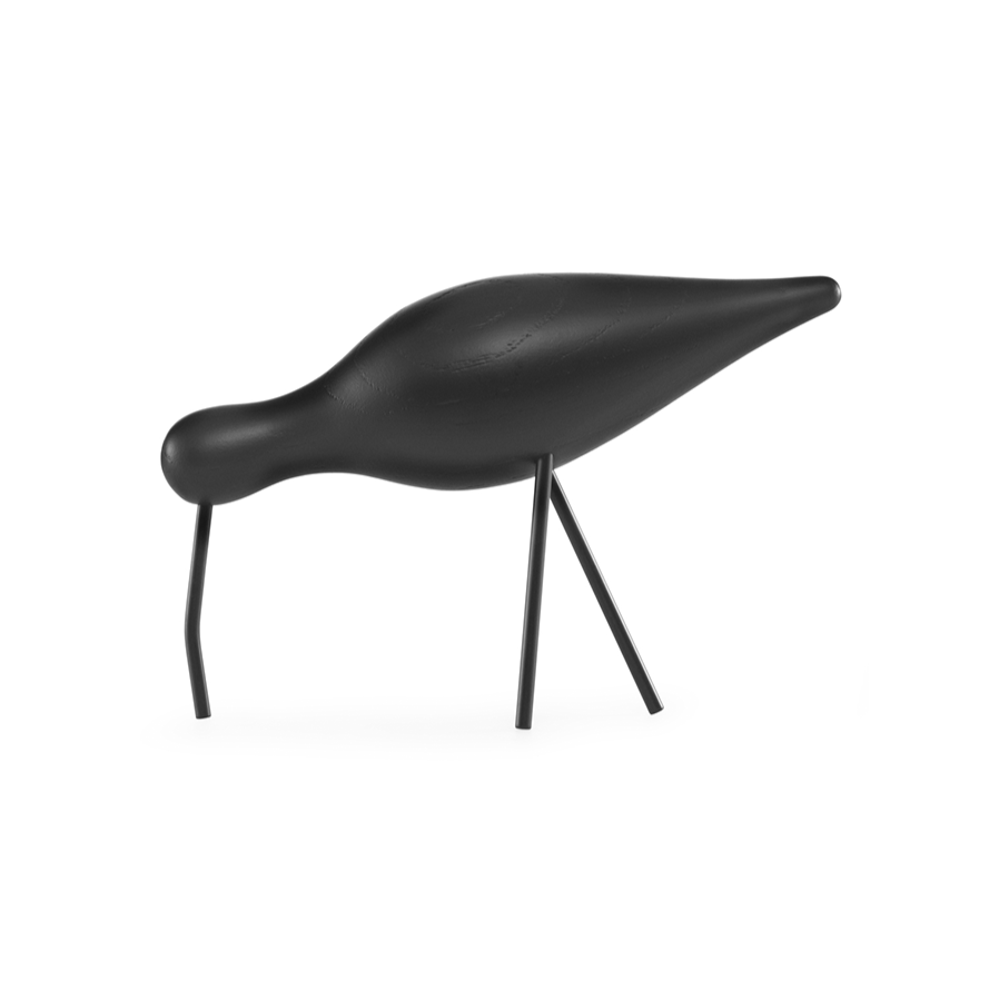 Black Shorebird wooden figurine with black legs