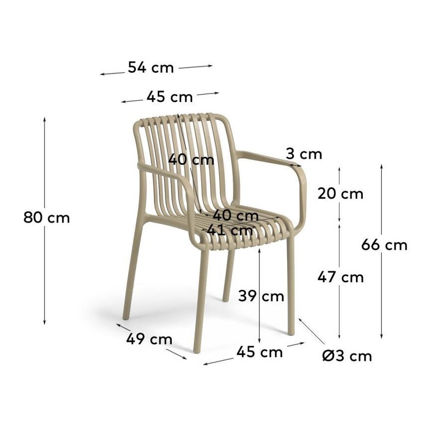 Made of recycling plastic, beige chair Isabellini is an excellent choice for those who care about the environment. Its durable design makes it resistant to UV radiation, which makes it an ideal furniture for outside use, regardless of weather conditions.