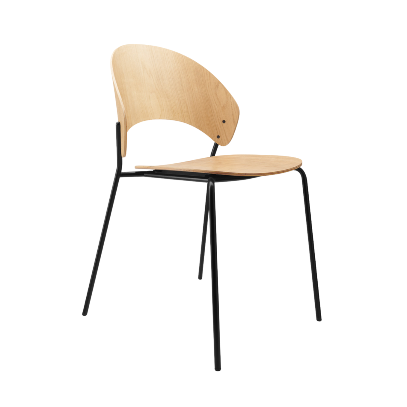 The Dosina Chair is a harmonious blend of solid oak and steel in a lightweight yet durable form. Inspired by the shape of a shell, the Dosina stands out with its fan-shaped backrest and spacious seat, providing exceptional comfort. The sleek, symmetrical legs and clean lines emphasize the minimalist character of the design, making it a timeless and versatile piece of furniture.