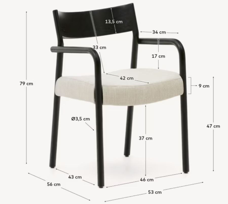 The Falconera chair is a balanced combination of simplicity, functionality, and refined detail. The beige upholstery made of chenille fabric brings warmth and texture to the interior, perfectly contrasting with the black base made of solid oak wood. Subtle lines and the organic shape of the armrests give the structure a sense of lightness, creating a form that is both harmonious and full of character.