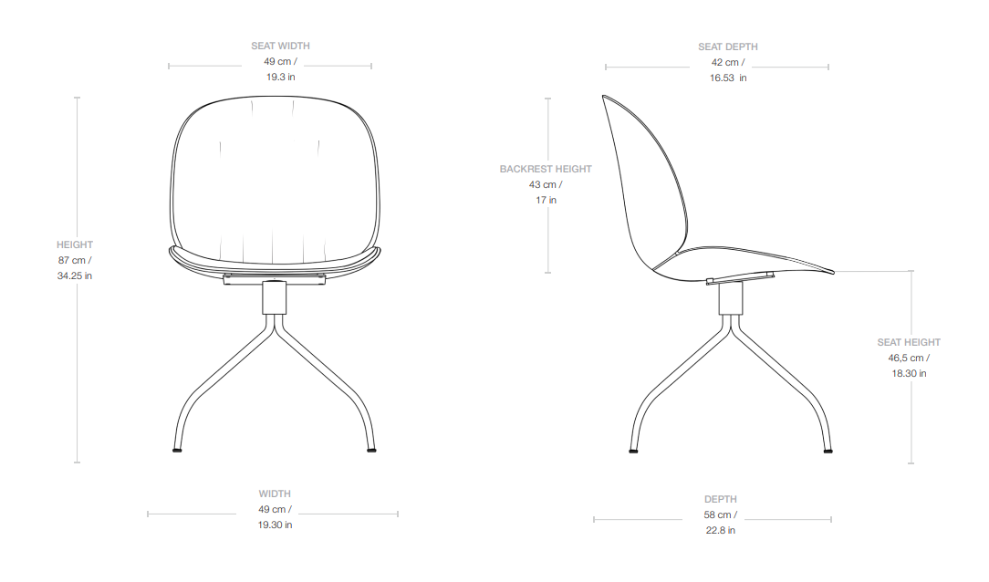 The new generation of upholstery highlights the plush texture and visible softness of the form, referencing the aesthetics of the 1970s. The Beetle Soft swivel chair on a four-legged base perfectly meets the demands of a modern workspace at home, in the office, or in hybrid environments. It is an excellent combination of ergonomics, aesthetics, and durability, designed with everyday comfort in mind.