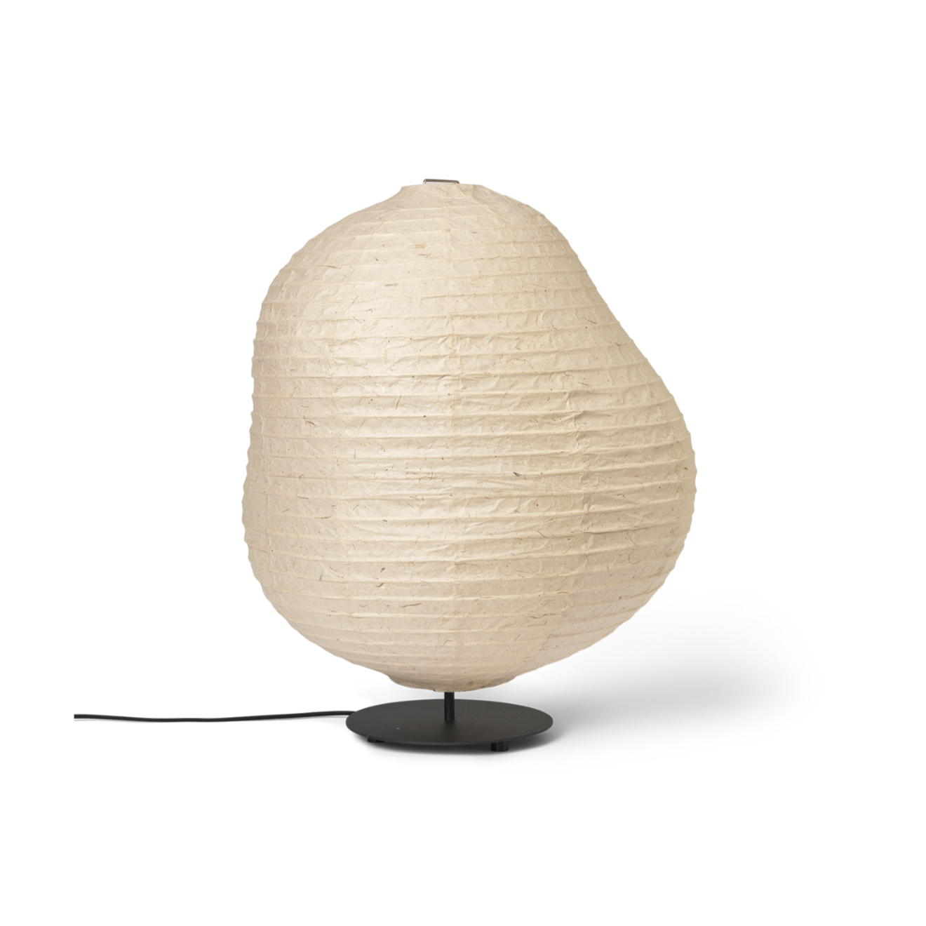 Floor lamp Kurbis Low is a meticulously crafted lighting element that combines the delicacy of traditional Washi paper with a sturdy, powder-coated base made of black metal. Its organic and asymmetrical shape brings a unique character to the interior while emitting a soft, subtle light that creates a warm and cozy atmosphere.