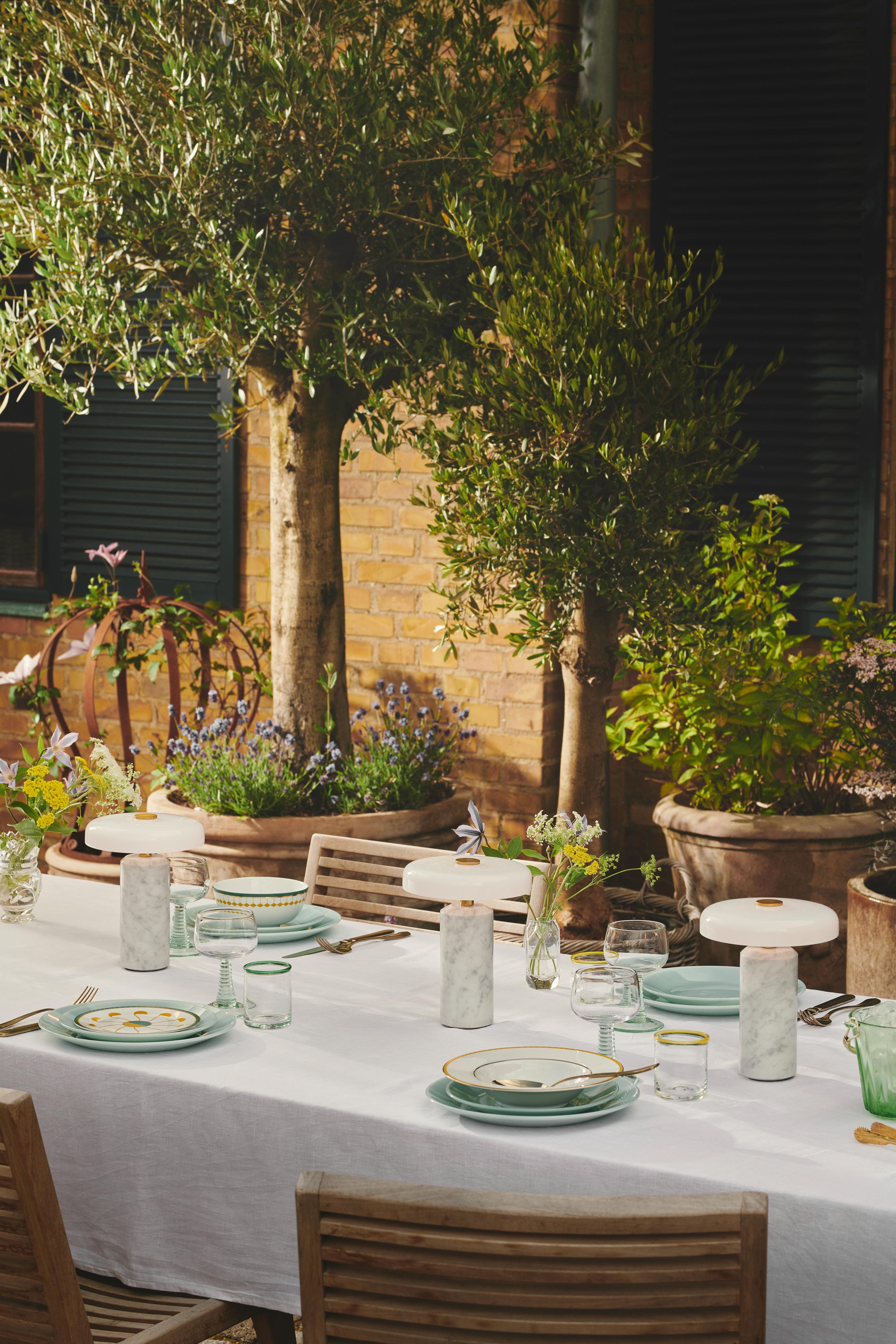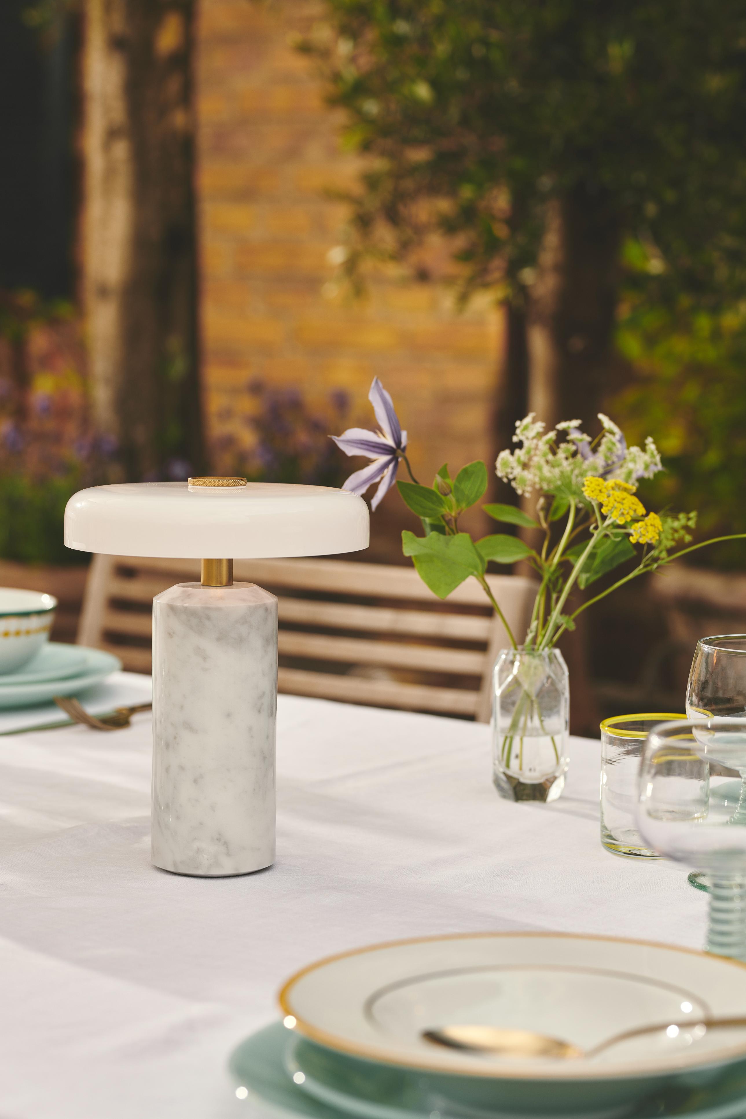 Portable lamp TRIP white marble with milky white glass