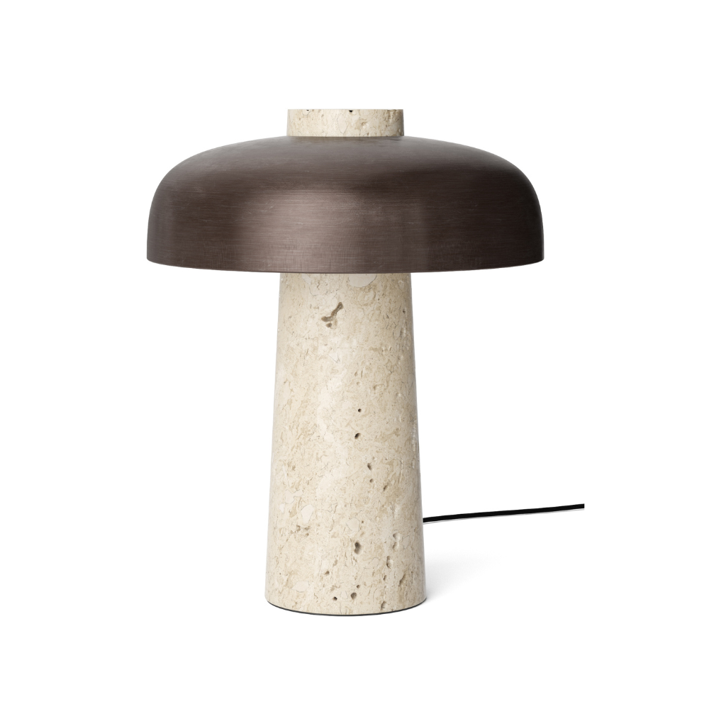 REVERSE table lamp with a brown shade and a stone base