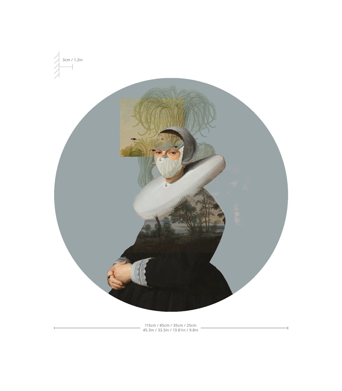 Non-woven arch-shaped mural FAUNA FRESCO muted blue
