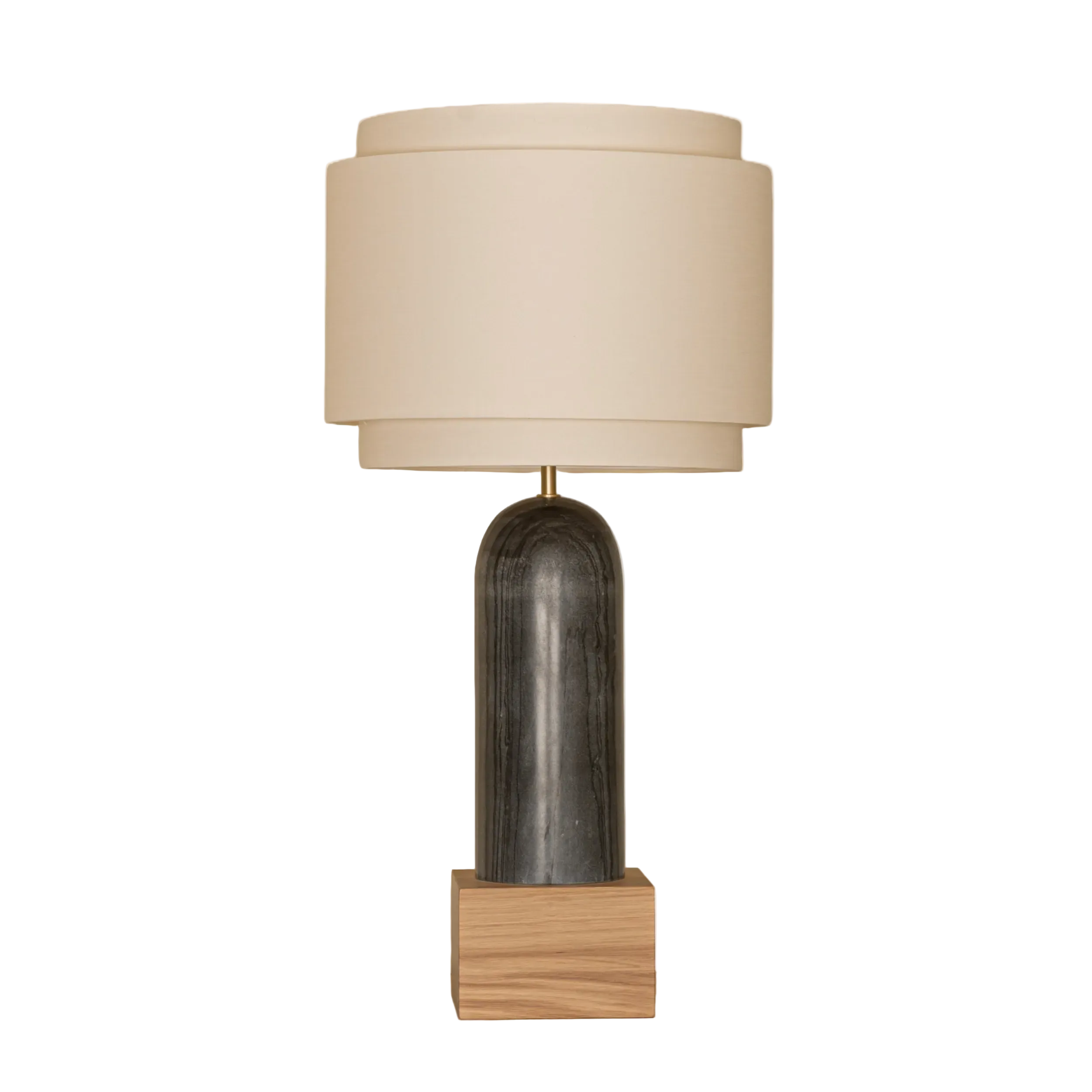 Table lamp Pura Kelo Duoble in a marble finish is a perfect example of how a minimalist form can become a unique decorative element. The two-layer shade, based on geometric superposition, diffuses light in a subtle way, creating a moody aura. Set on a solid base made of marble and wood, this table lamp combines timeless style with material authenticity. The removable lower base adds functionality and allows for customization to fit the space.