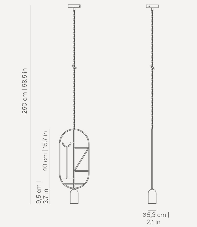 Hanging Lamp Wooden Dots WD02 is a striking composition of geometric forms enclosed in an elegant, vertical structure. This designer hanging lamp combines a graphic metal construction with a subtle, pinpoint light source, creating a modern decorative element with a strong visual identity. Thanks to its slender form, the lamp is perfect for a living room, dining area, commercial space, or as part of a larger lighting installation.