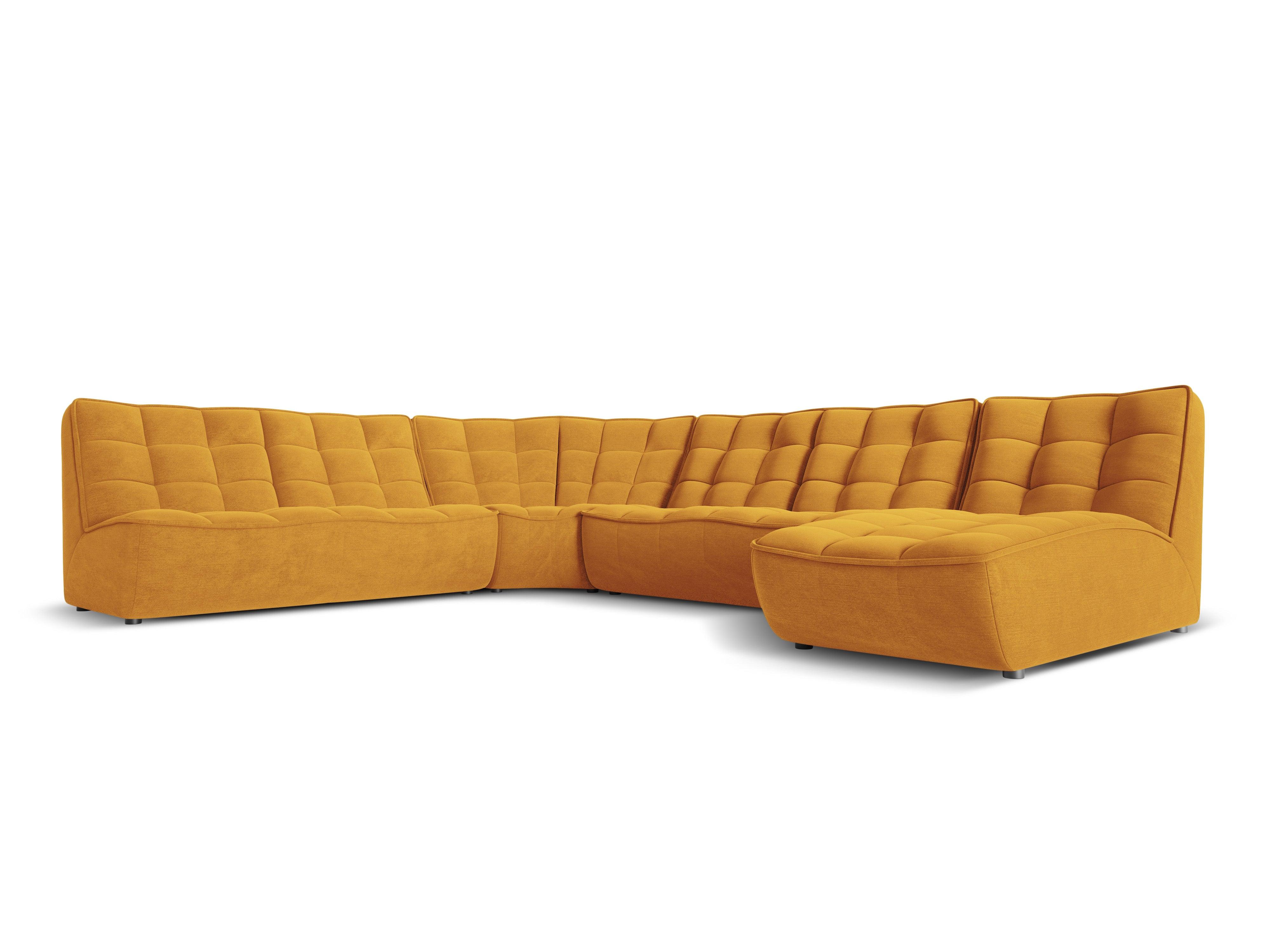 The panoramic corner sofa Moni defines functionality and comfort combined with modern design. The stylish tufting and original shape are perfect for both an elegant living room and a contemporary office. The line of the seat and backrest is curved and features a gently contoured indentation, offering extraordinary user comfort.