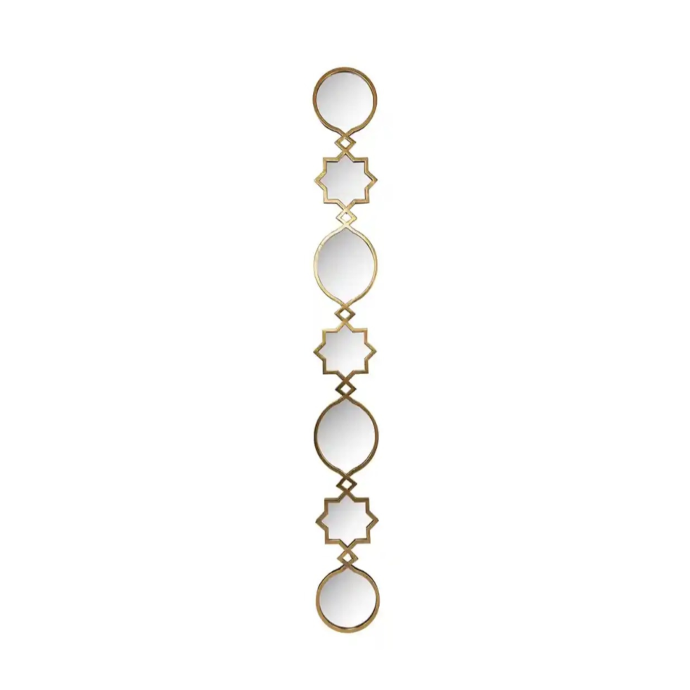 Elegant mirror Babice decorative with a geometric shape that perfectly decorates high interiors and gives them a unique character. The slim, vertical structure made up of connected mirrors in various shapes introduces a modern rhythm to the arrangement and visually elevates the space. It is ideal for the living room, hallway, or bedroom as a functional decoration.