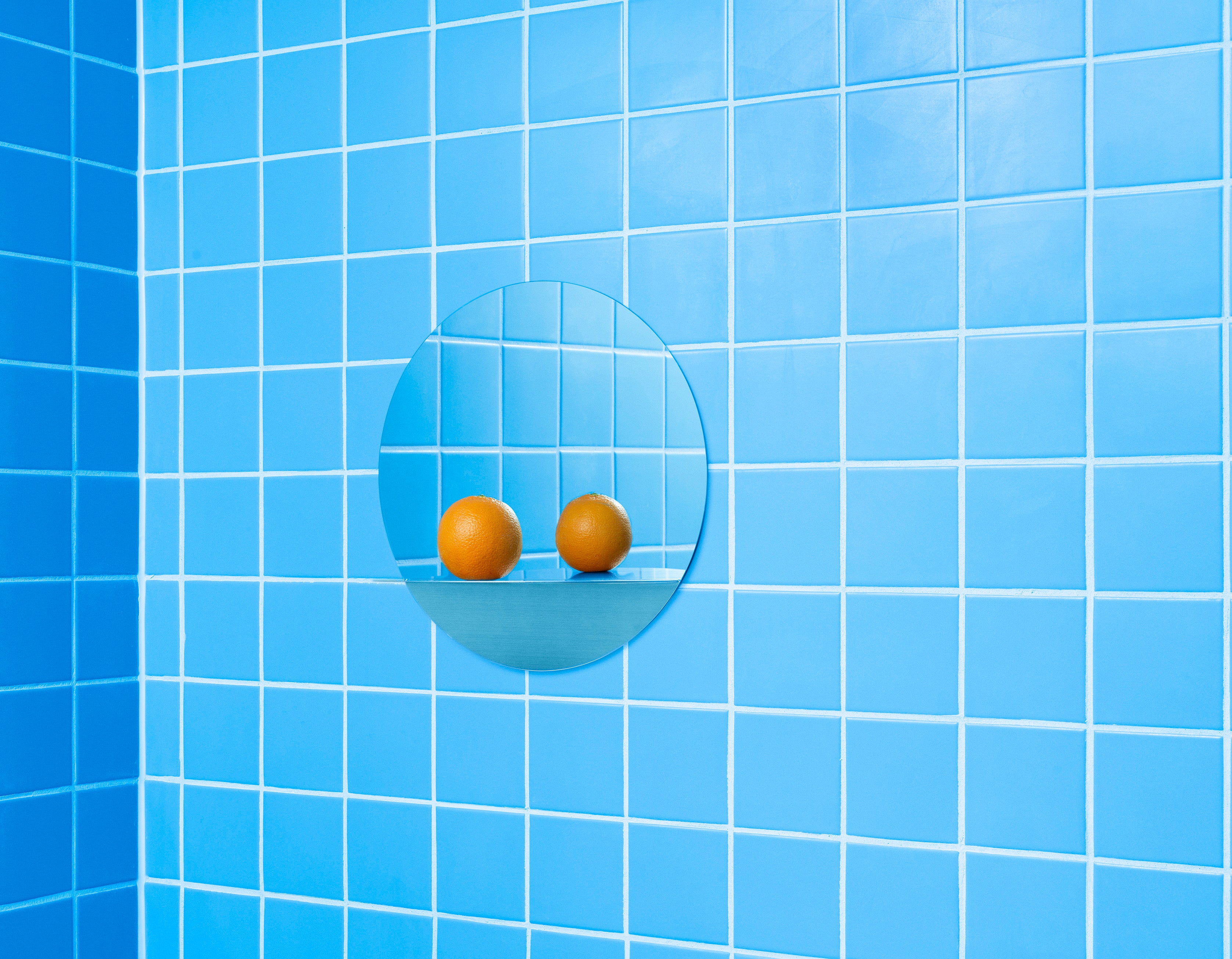 Wall mirror Horizon Round Grey is an elegant and compact form that combines modern design with practical functionality. Designed by the duo KaschKasch, the mirror features a round shape and an integrated powder-coated steel shelf in grey. The reflection of the shelf in the glass surface creates a sense of depth and evokes the horizon over the sea – a theme that inspired the designers to create the entire Horizon collection.