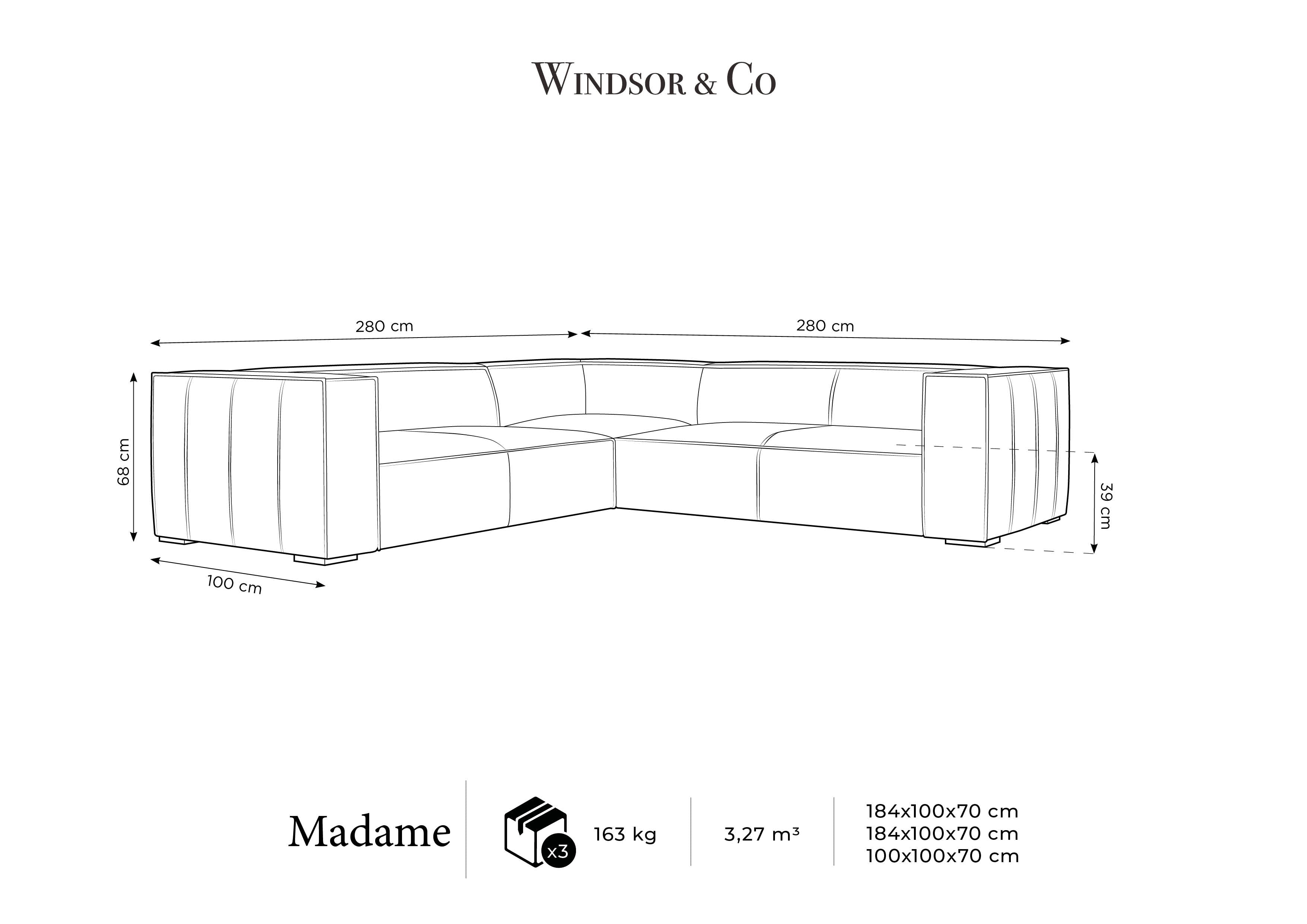 Narożnik symetryczny MADAME granatowy Windsor & Co    Eye on Design