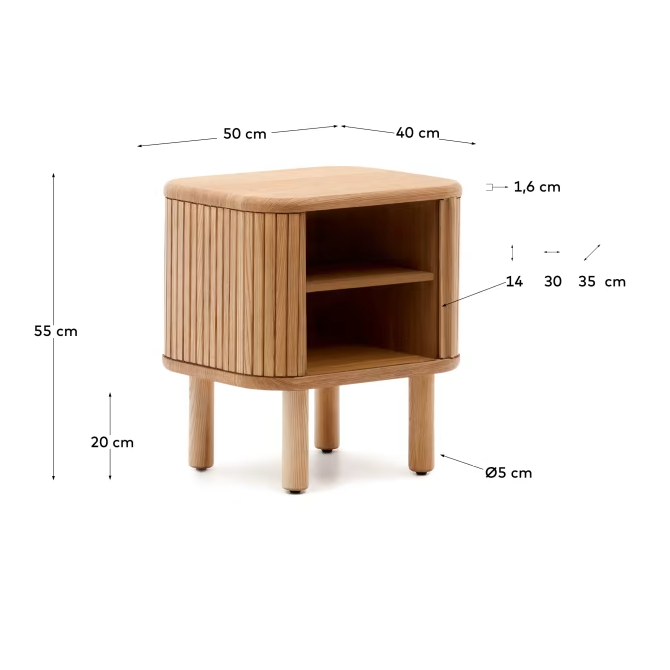 The Kave Home team has created a Milelen collection with a modern design with rounded shapes. The furniture is made of ash veneer, with sliding doors with wooden slats, giving the collection a distinct character.