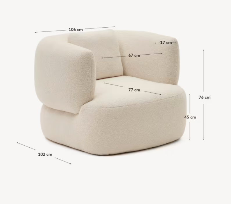 Martina is a proposal for those who wish to combine exceptional design with undeniable comfort. Let yourself be carried away by the atmosphere of relaxation and luxury by choosing the creamy armchair in boucle fabric Martina – the perfect complement to any elegant interior.