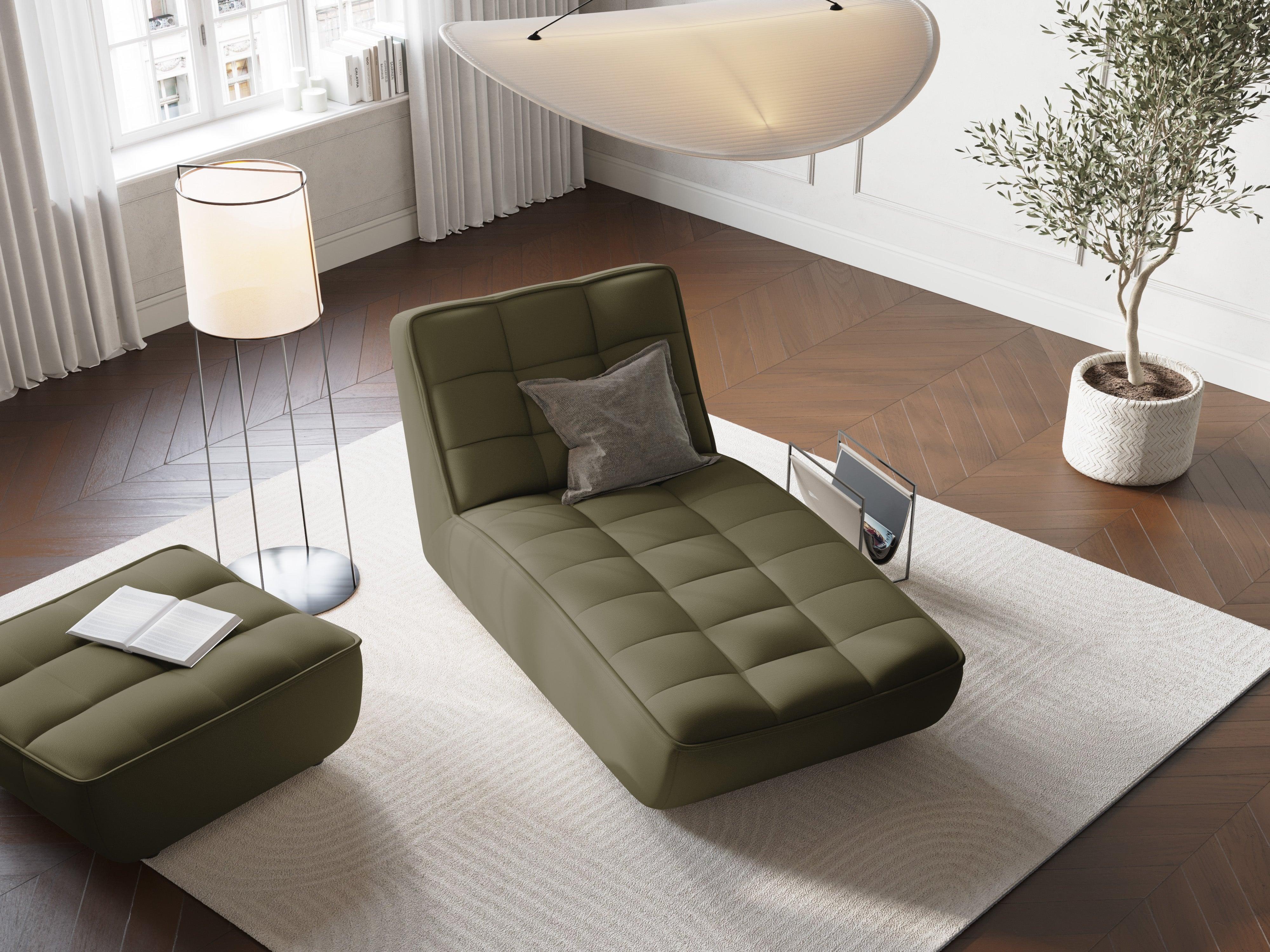 Moni olive leather chaise chaiselong