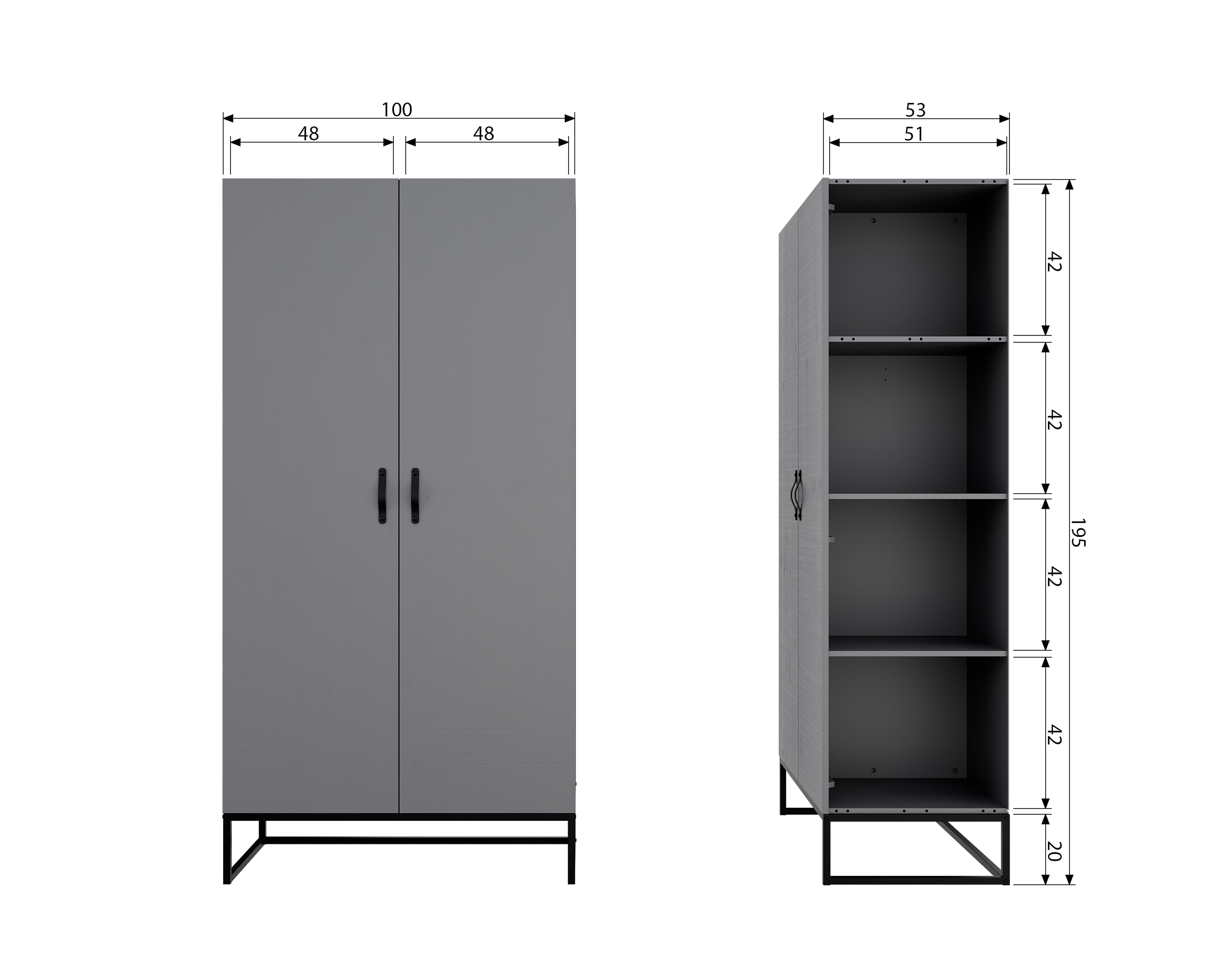 2-Door Wardrobe Morris in gray is the perfect combination of simplicity, functionality, and Scandinavian style. Thanks to its compact size, it works wonderfully in smaller spaces, adding lightness and a breath of freshness.