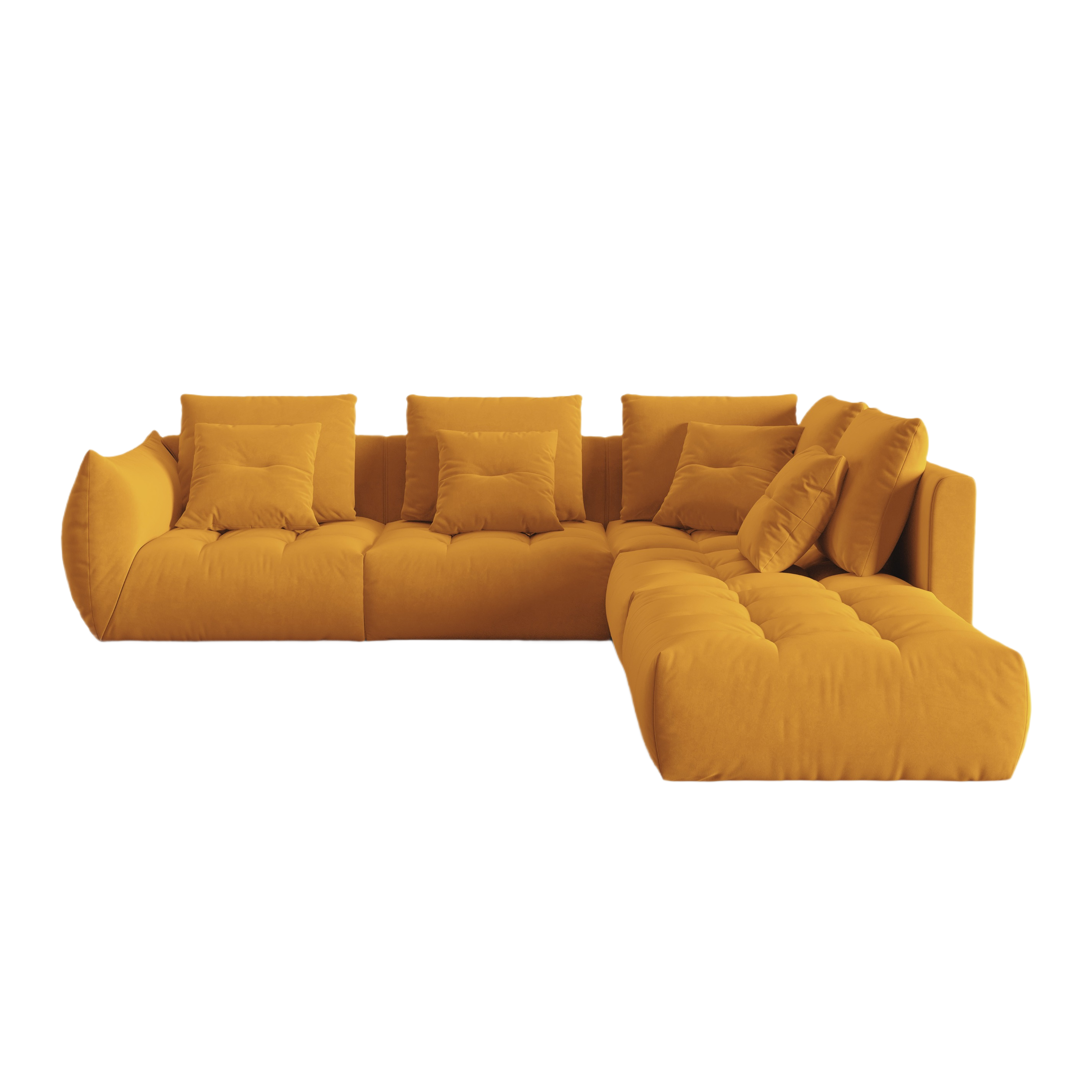 Modular velvet corner sofa for 4 people right-facing BLOOM yellow