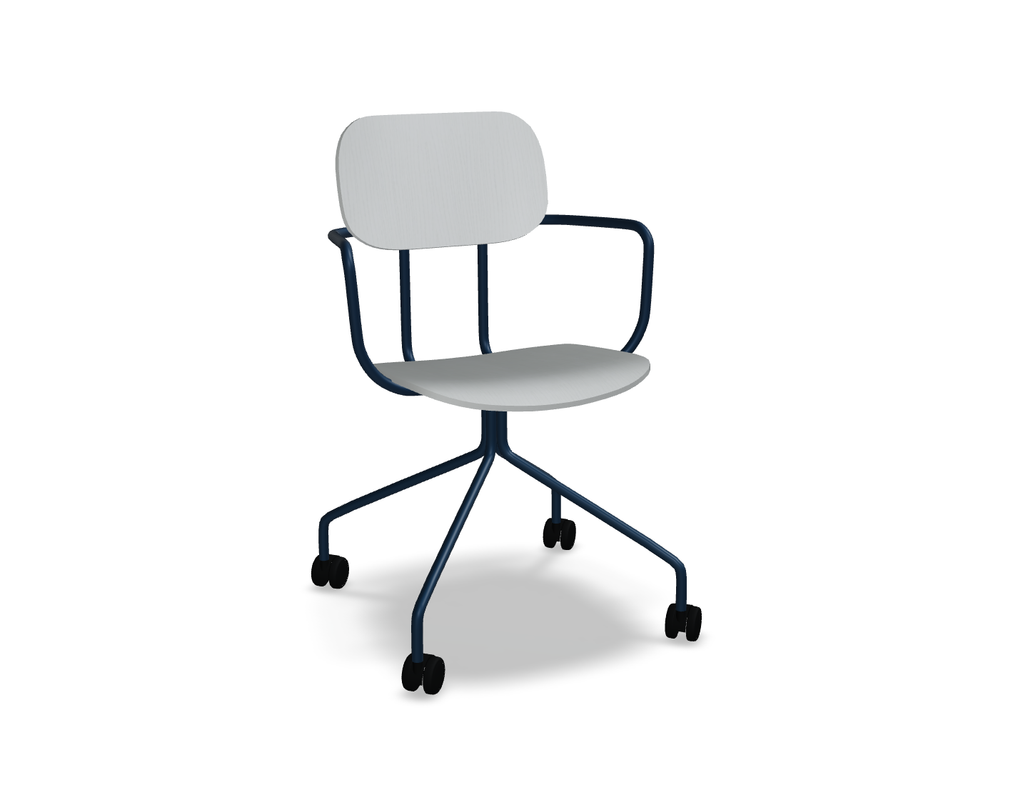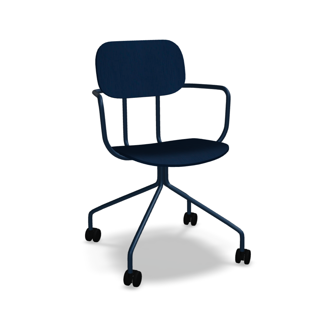 Office chair New School, inspired by the classic form of a school chair, offers many configurations ideal for different office zones. The version with a four -pointed base on wheels increases functionality, making it easier to move at the desk and adjust the position to current needs. The possibility of personalizing finishes and optional armrests makes this chair a versatile solution that will be perfect for both offices and educational and workshops.