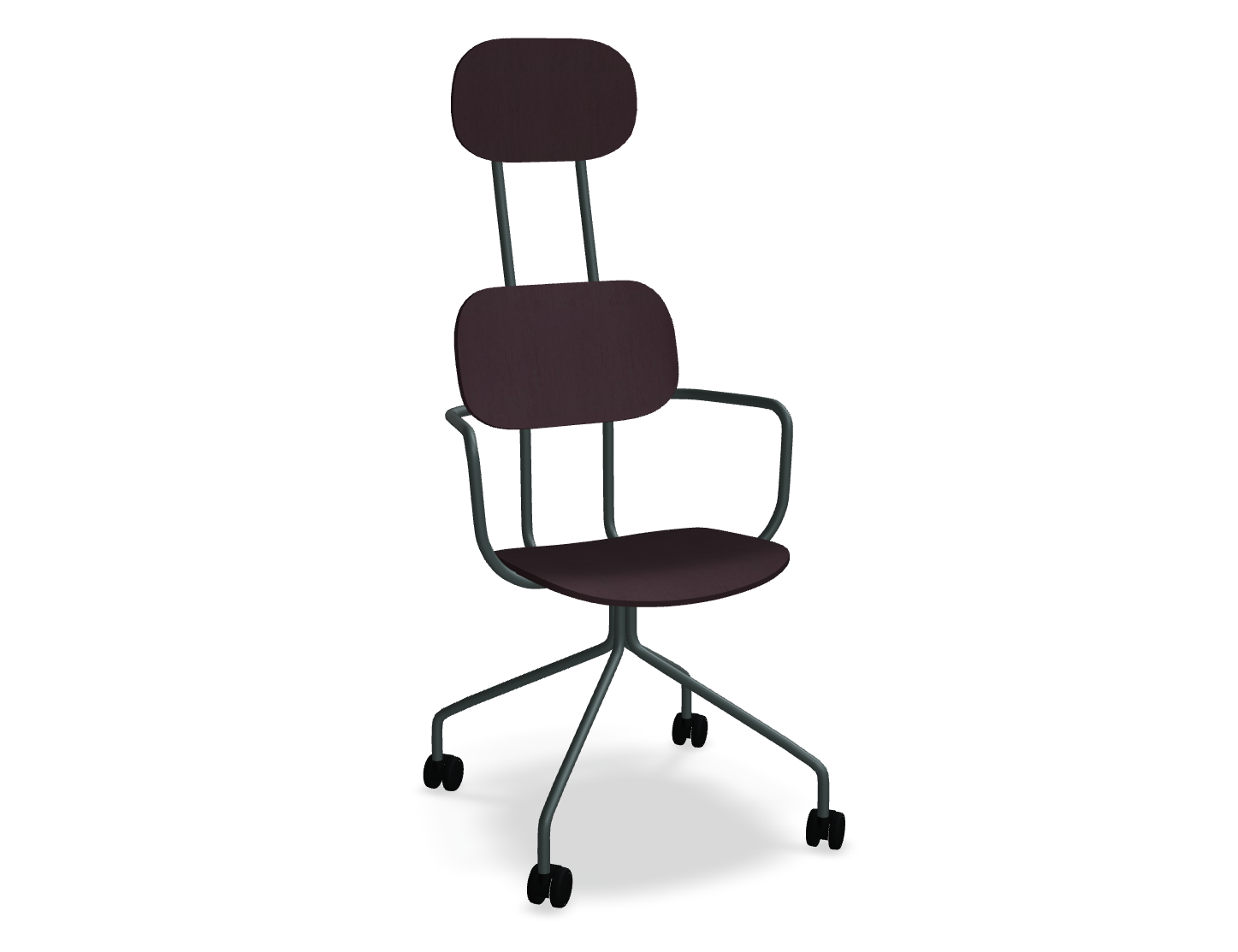 Office chair with new school headrest dark green base with wheels