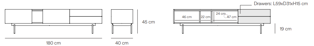 Cabinet The OTTO RTV is additionally equipped with two drawers, which provides additional functionality and place for storing various small things. Perfect for the living room as a base for storing audio-video equipment and as a designer element of interior design. The RTV cabinet not only has a practical function, but also adds style and character to the room, creating a pleasant atmosphere to watch TV and relax.