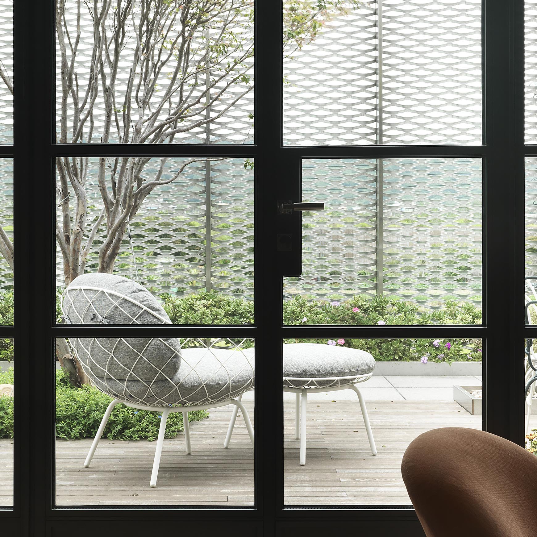 The soft seat cushion made of fire-retardant polyurethane foam is covered with a removable cover made of "Polyhedra" fabric, making cleaning and maintenance easy. Its elegant form and distinctive woven structure make Pina the perfect complement to garden arrangements, terraces, or modern hotel spaces.