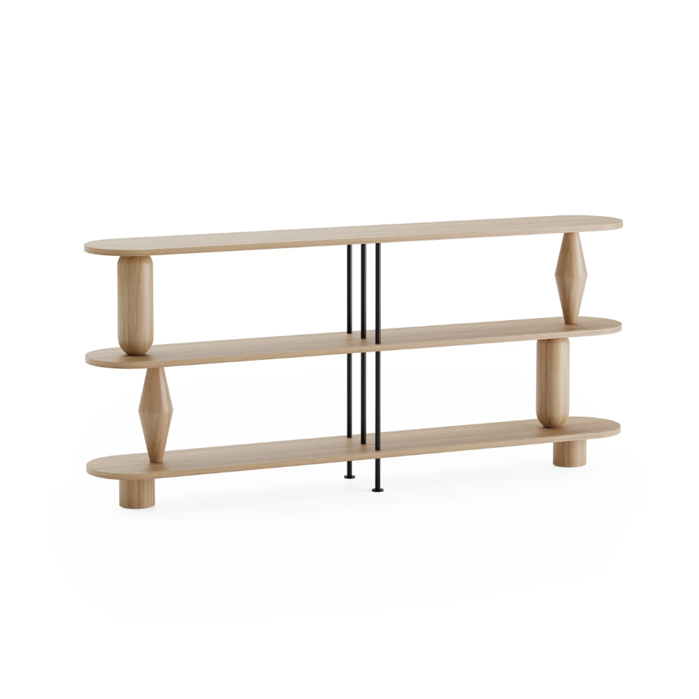 The Vazoo Shelf is a modern interpretation of the shelving system, where aesthetics meet functionality. The turned, sculptural elements reminiscent of vases give the furniture a unique character and become its hallmark. Thanks to the use of lightweight, openwork details made of powder-coated steel, the overall design maintains a visual lightness, perfectly fitting into both minimalist and more eclectic interiors.