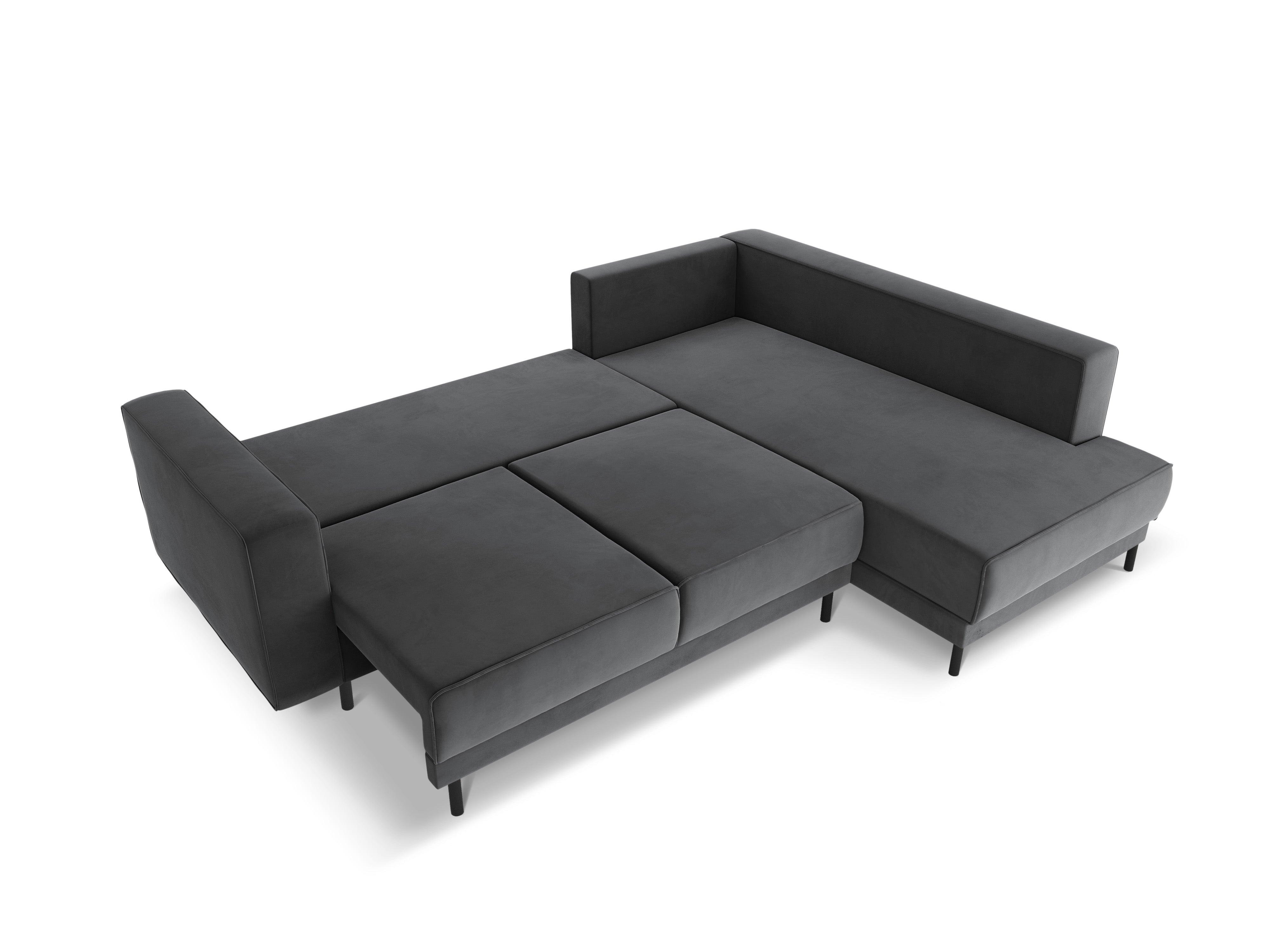 Narożnik aksamitny prawostronny z funkcją spania CARO ciemnoszary Micadoni    Eye on Design