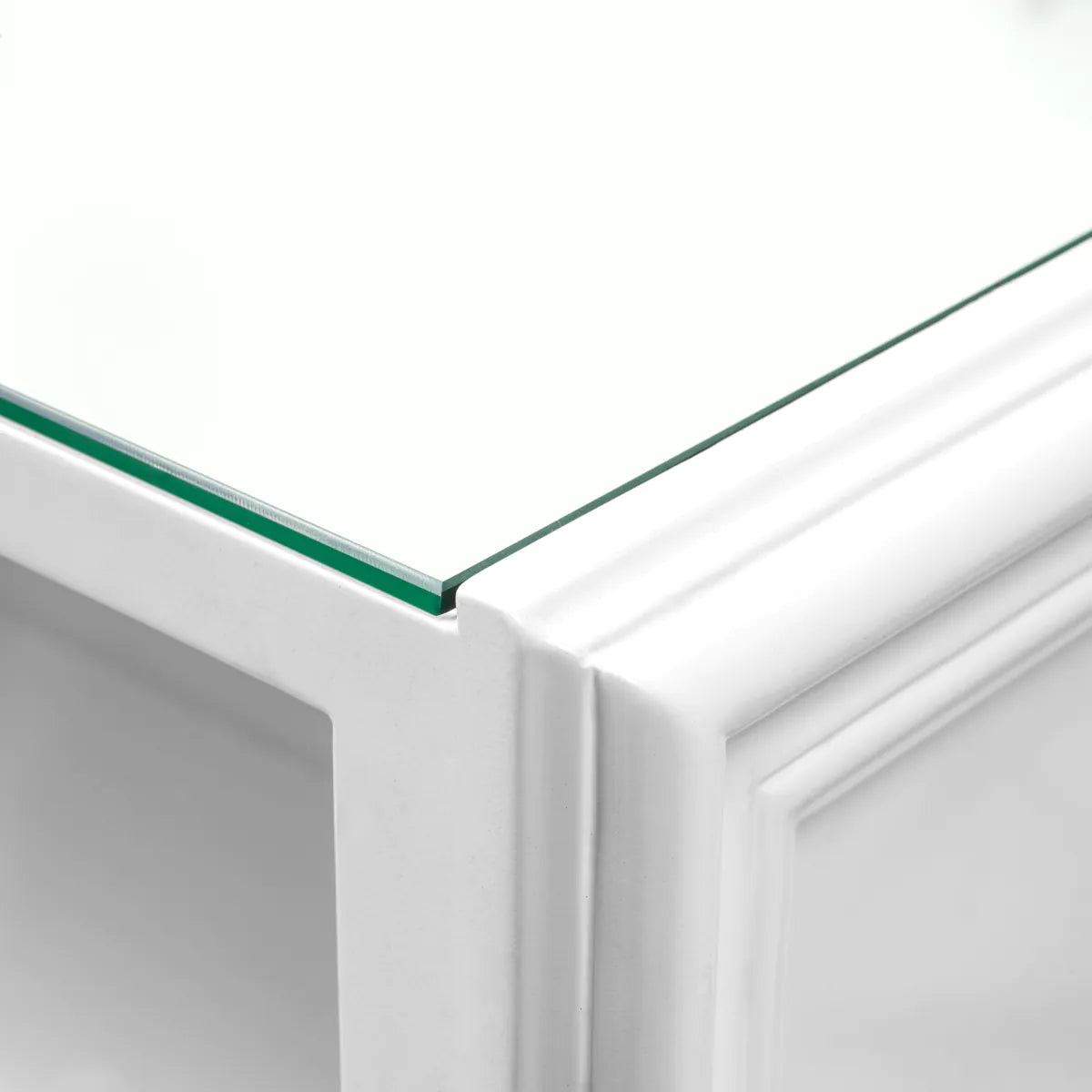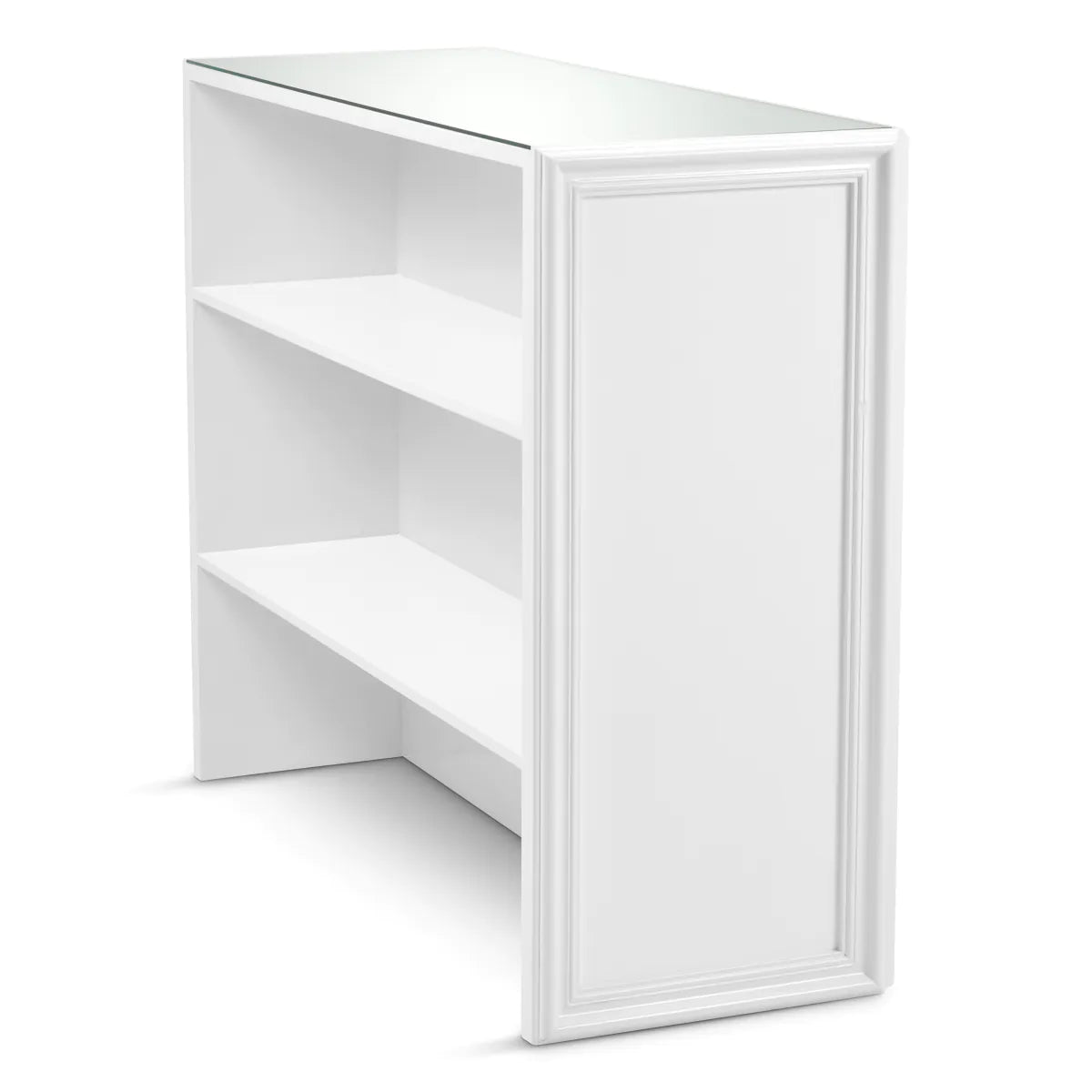 Barek Roland in high-gloss white is a synonym for modern elegance and sophisticated design. Its front is adorned with subtle ribbon-like panels and a glass top, creating a harmonious whole that combines simplicity of lines with luxurious materials.