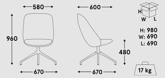 Paralel with a high support offers a wide range of personalization options, including the ability to add wheels and armrests that increase the comfort of use and mobility. Its elegant, streamlined design is great in Lounge spaces, offices and conference rooms, adding professionalism and style to the interiors.