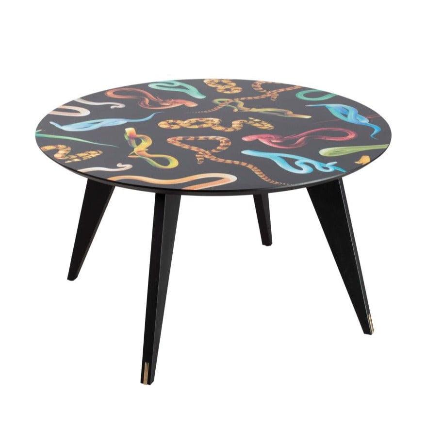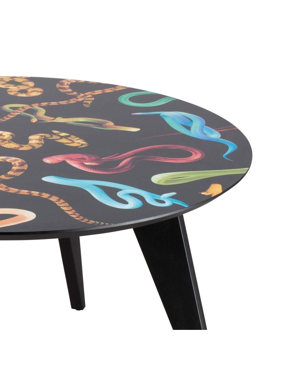 Designer table in the style of the 70s, which Like a gate to another, surreal dimension, it will give the interior a unique character. Distitory legs and a slightly controversial collage on the top create an original work of art. Stayed inConsciently in Italy, which guarantees high quality.