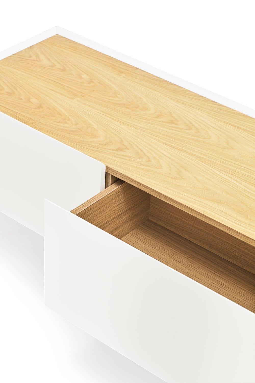 Spacious and striking — that's exactly what it is TV cabinet Arista. The combination of white fronts and a wooden top harmonizes perfectly. The elegant design maintains simplicity and minimalism. Thanks to the use of high-quality materials, the cabinet under the television Arista is durable and stable.
