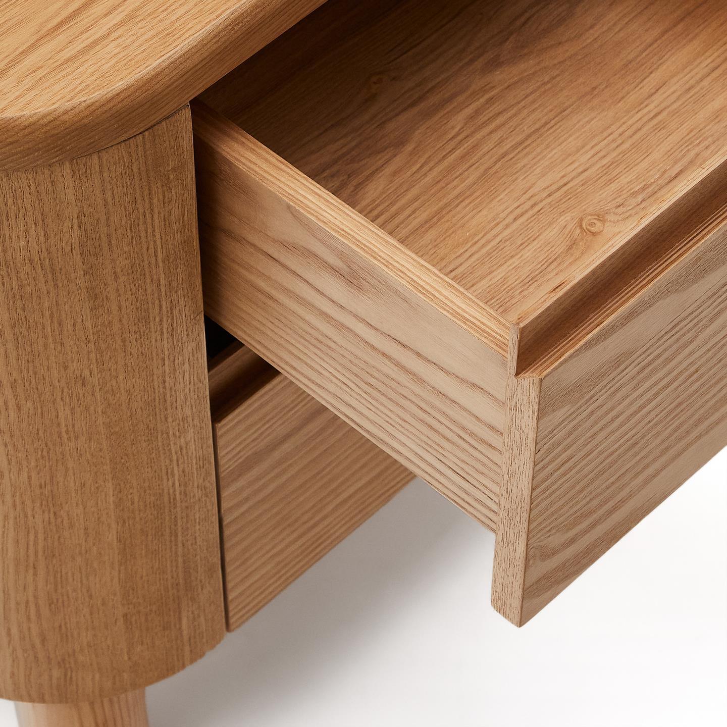 Salaya it night stand, which is distinguished by its unique design - a combination of straight lines with dynamic curvature of side panels gives it a unique character. Made of ash wood with a natural finish, each copy is unique, emanating its own personality. Restore your bedroom harmony and style thanks to the Salaya night table.