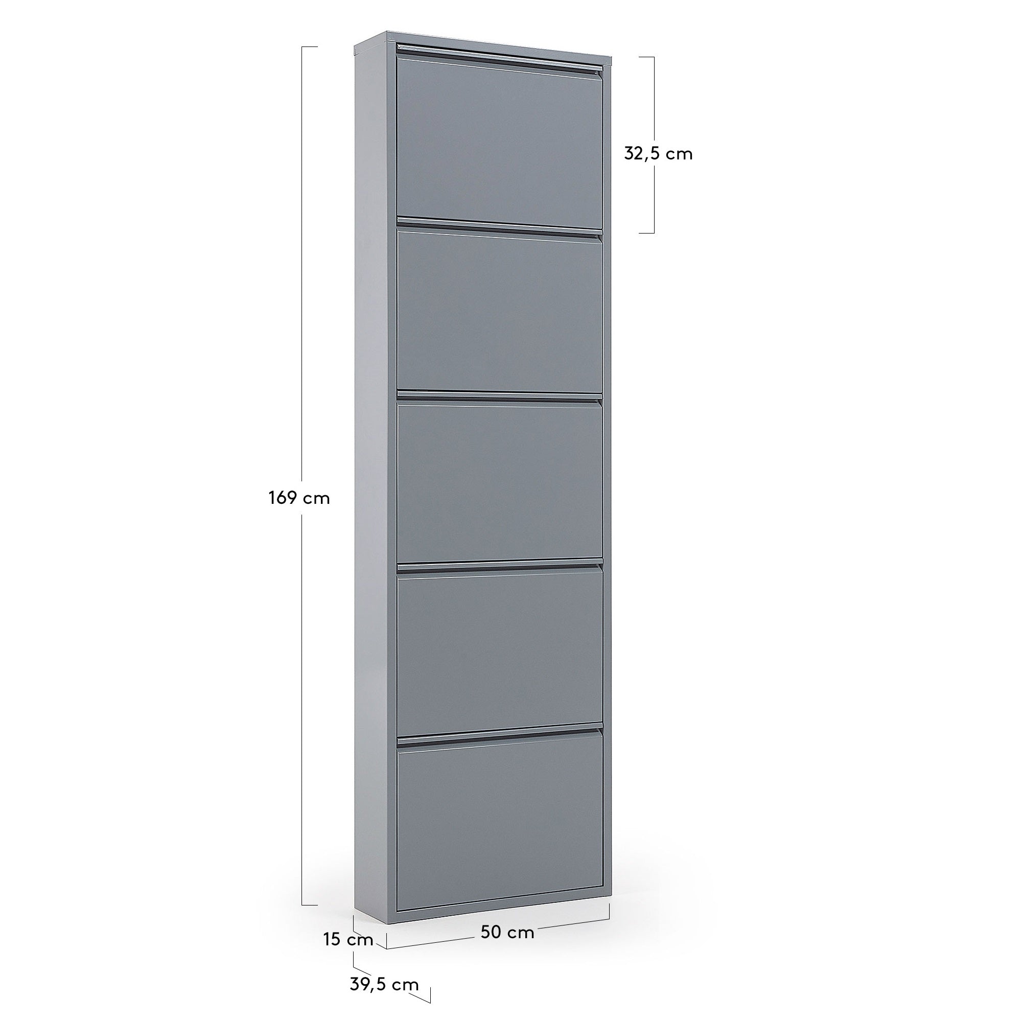 Shoe cabinet The Ode in gray is a sophisticated shelf made entirely of metal, ensuring sturdiness and durability. Designed for storing various types of footwear, it presents itself as an excellent solution for those who value order and an elegant interior finish.