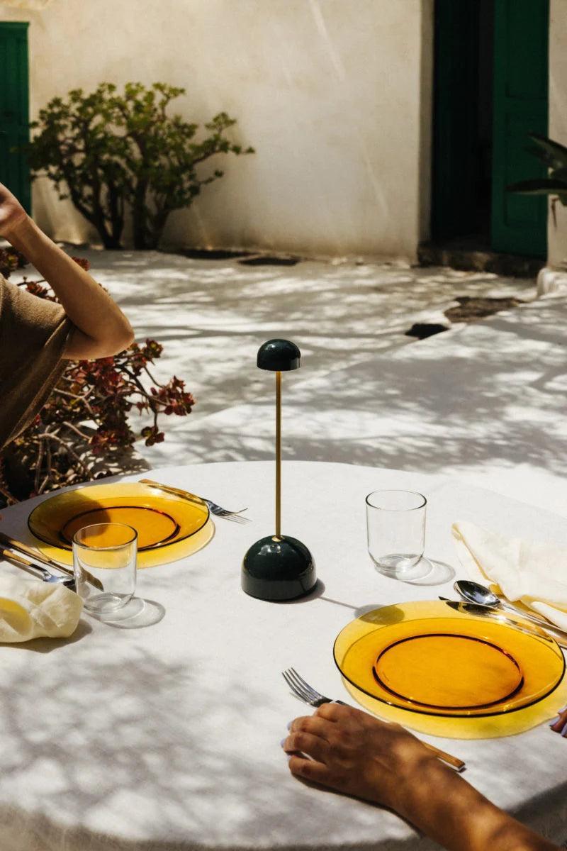 Free from cables, light, with a simple structure and neutral colors, this design becomes a discreet part of the table, without formal or chromatic excesses. The object is simplified to the maximum, which allows for easy placement and mobility, and provides good lighting in restaurants, bars, cocktail bars, terraces and patio.