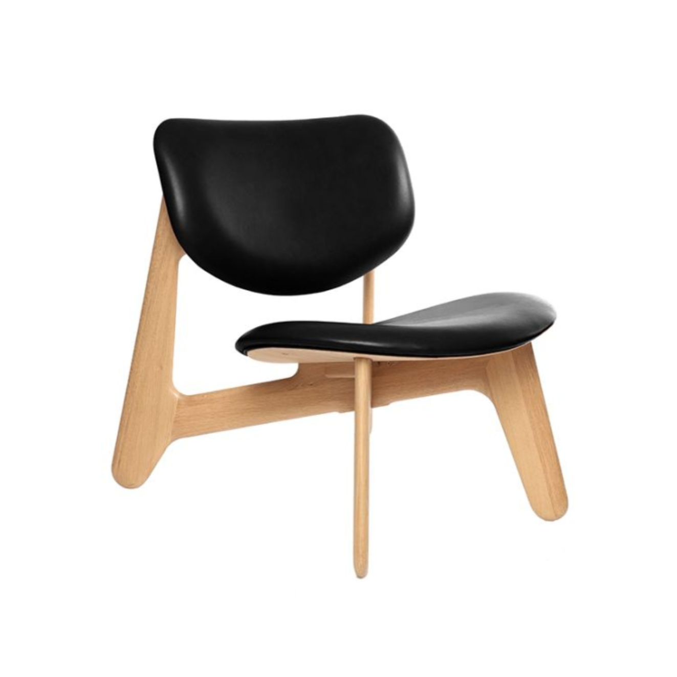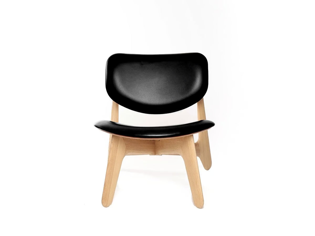 Slab armchair black leather with an oak base