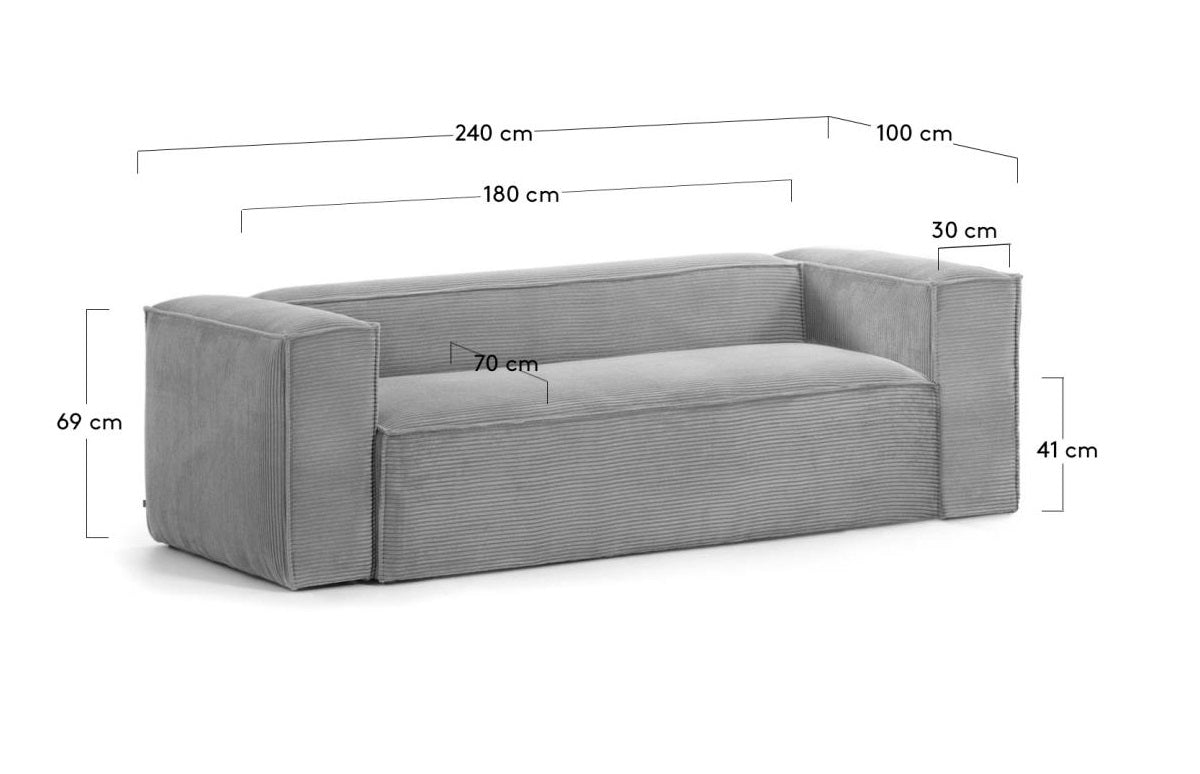 3-Seater Sofa BLOK Gray Corduroy
