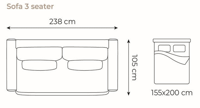 Velvet 3-Seater Sofa with Sleeping Function KAPUA Dark Beige