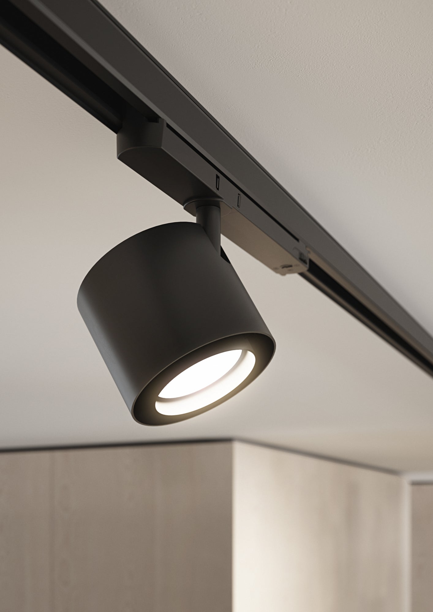 Spot LP 072 Track is a modern, functional track spotlight from the Louis Poulsen collection, designed with demanding architectural spaces in mind. Its minimalist form and elegant finish in a silky matte – black or white – make the ceiling spotlight perfectly blend with contemporary office, retail, and hotel interiors. With an adjustable spotlight that tilts up to 45°, the fixture allows for precise direction of light where it is most needed.