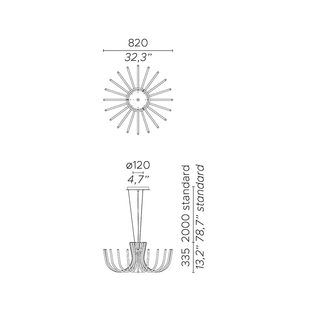 Chandelier Stardust is inspired by large classic chandeliers but gains a more minimalist appearance thanks to the use of metal without additional decorative elements. Stardust provides double lighting, thanks to micro LED diodes placed at the ends of the arms and a bulb in a glass cylinder, which serves as the main source of light.