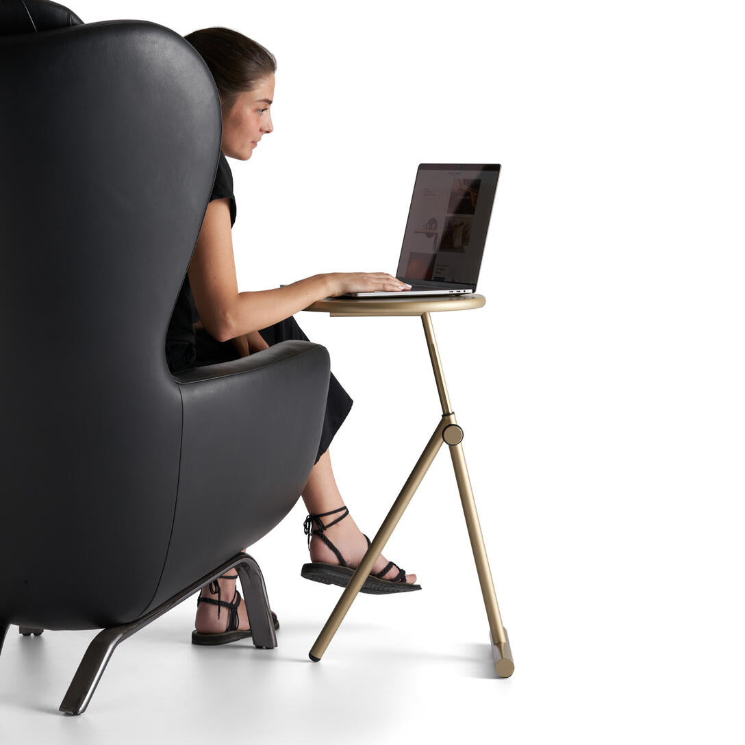 Side table Koji is a multifunctional piece of furniture designed by Lapo Ciatti, combining modern aesthetics with practical solutions. Equipped with wheels hidden in the base and a convenient knob for height adjustment, it works perfectly as a serving table next to a sofa, bed, or as a laptop stand. Its sleek form and mobility make it indispensable both at home and in commercial spaces.