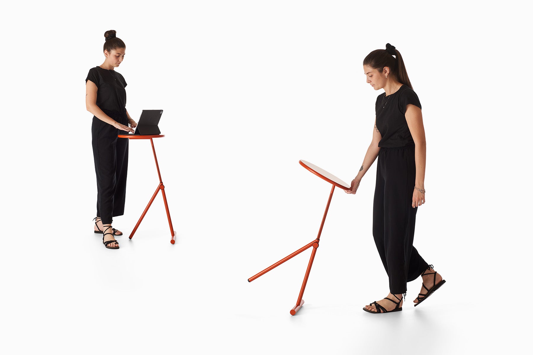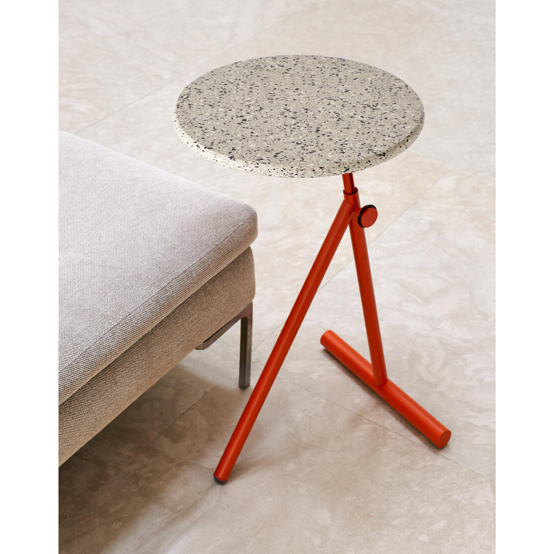 The Koji model is available in several color variations for the base (black, red-clay, gold) and with tops in two finishes: lacquered MDF color-matched to the base or made from 100% recycled eco-friendly material. This allows you to choose the version that best fits your interior — from elegant minimalism to more expressive, designer accents.