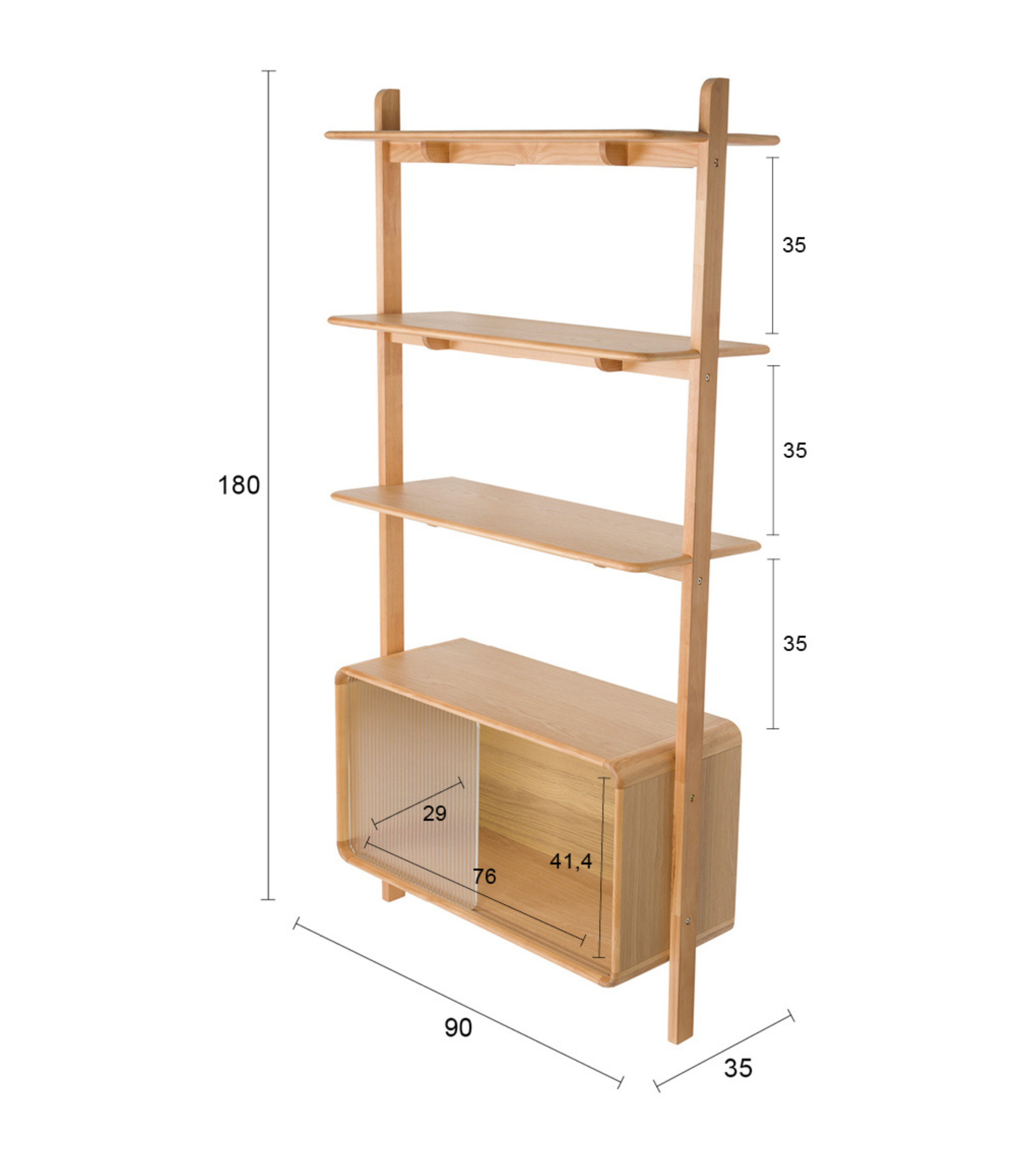 The Rise collection is an excellent example of combining functionality with refined design. This shelf captures attention with its rounded lines and decorative sliding doors made of ribbed glass, which give the whole a lightness and subtle retro character. With its light oak finish, the furniture radiates natural warmth and fits perfectly with both classic and modern interiors.