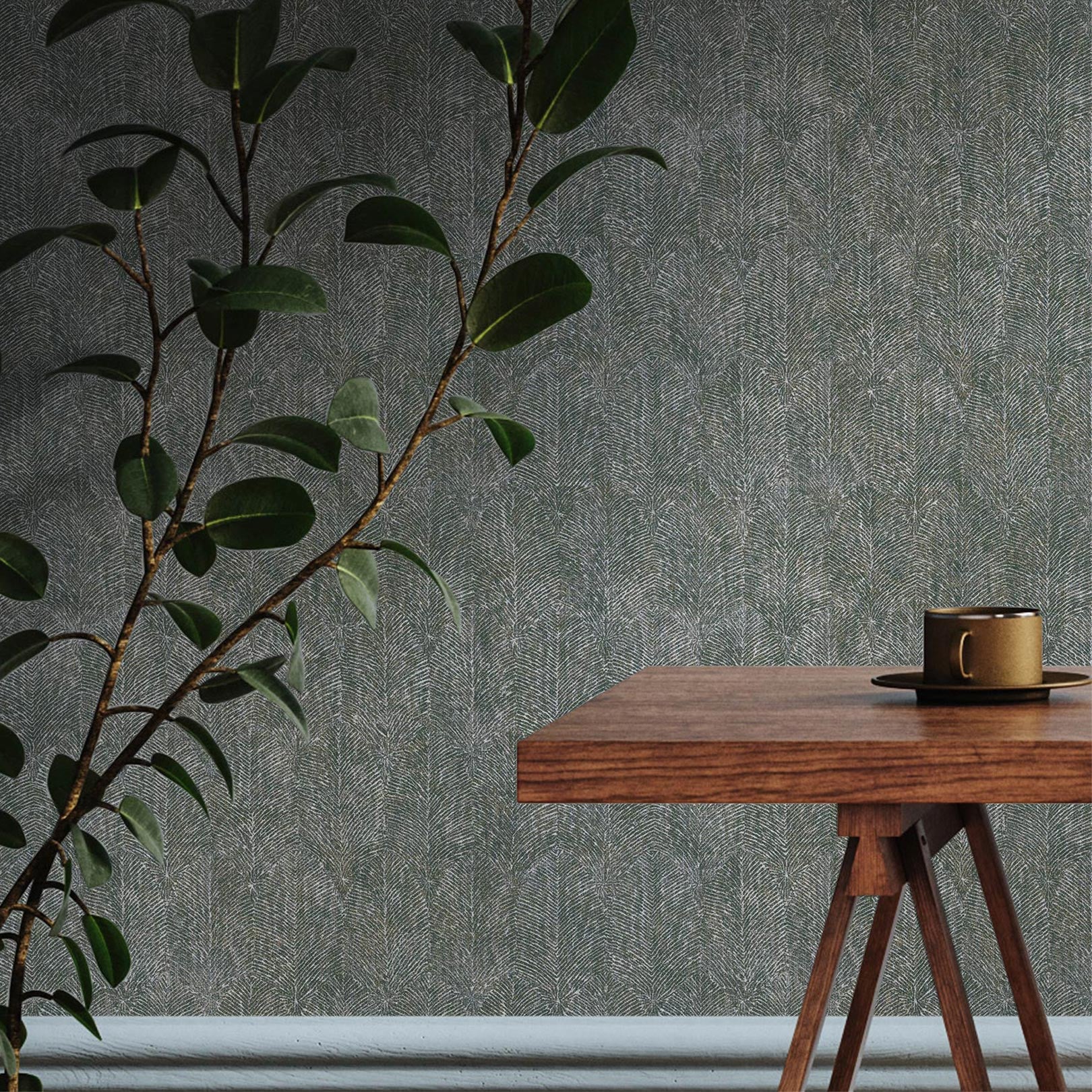 Structural wallpaper with a plant motif of ISABELLINE leaves - VERT IMPERIAL green